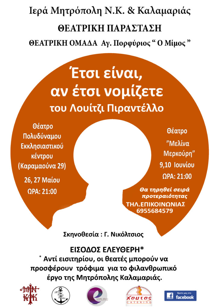 Θεατρική παράσταση από την θεατρική ομάδα τους Γραφείου Νεότητας της Ιεράς Μητροπόλεώς μας “Άγιος Πορφύριος, ο Μίμος”.