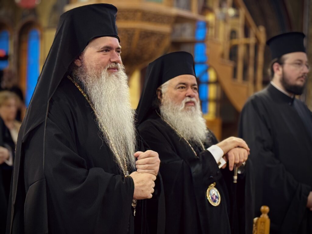 Προσκεκλημένοι του οικείου Ποιμενάρχου κ. Ιουστίνου, ήταν οι Σεβασμιώτατοι Μητροπολίτες Κασσανδρείας κ. Νικόδημος, πνευματικό ανάστημα και πρώτος συνεργάτης του μακαριστού Αρχιερέως, ο οποίος προέστη της Θείας Λειτουργίας και Νεαπόλεως και Σταυρουπόλεως κ. Βαρνάβας, πνευματικό τέκνο και δεξιός βραχίονας του στενού φίλου του μακαριστού Αρχιερέως Προκοπίου, Μητροπολίτου Νεαπόλεως κυρού Διονυσίου, ενώ στο ιερό βήμα παρέστη συμπροσευχόμενος ο Σεβασμιώτατος Μητροπολίτης Βρυούλων κ. Παντελεήμων, εκ των συνεργατών του μακαριστού.