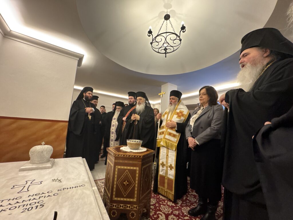 Ακολούθησε Αρχιερατικό Τρισάγιο, στην κατακόμβη του Ναού, όπου βρίσκεται ο τάφος του μακαριστού, υπό του Σεβασμιωτάτου Μητροπολίτου Νεαπόλεως και Σταυρουπόλεως κ. Βαρνάβα και παρετέθη δεξίωση σε όλους τους εκκλησιαζομένους.