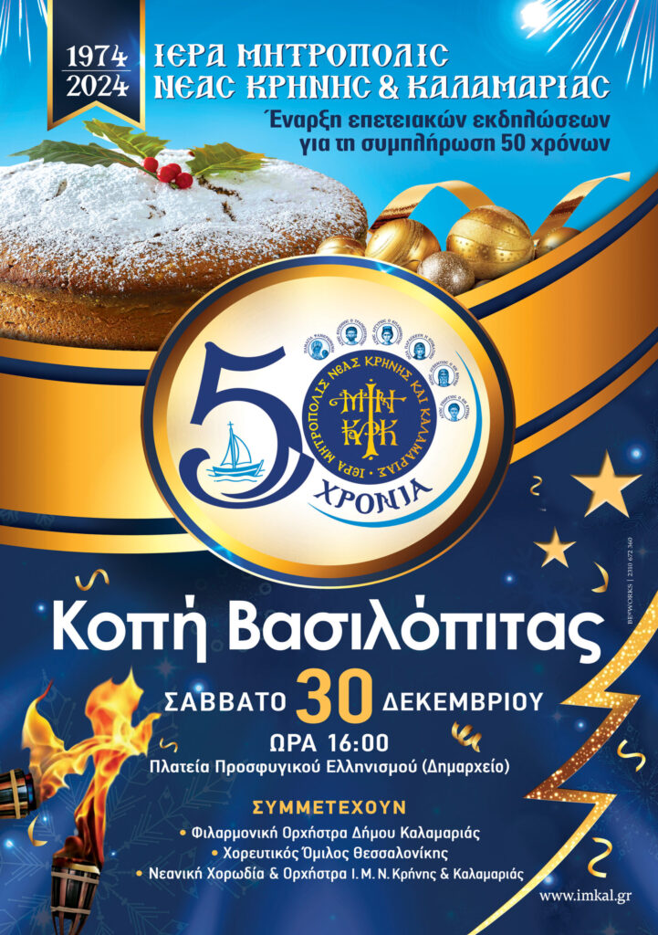 Κοπή Βασιλόπιτας Ιεράς Μητροπόλεως Νέας Κρήνης και Καλαμαριάς – Σάββατο 30 Δεκεμβρίου 2023 – Πλατεία Προσφυγικού Ελληνισμού (Δημαρχείο Καλαμαριάς)
