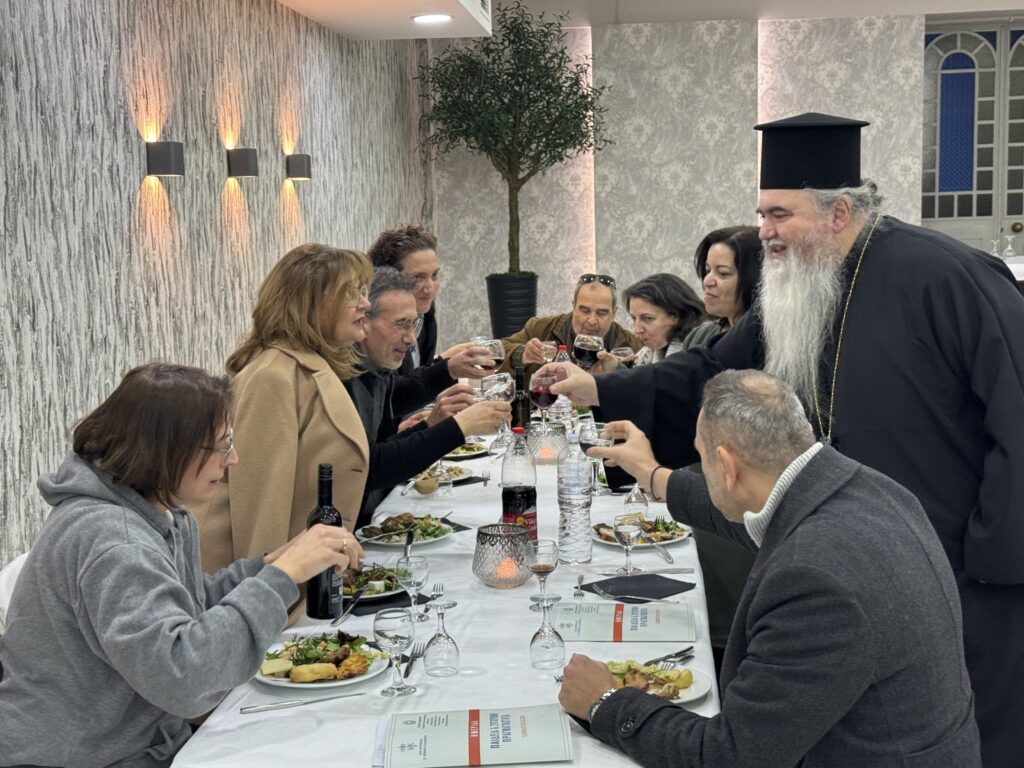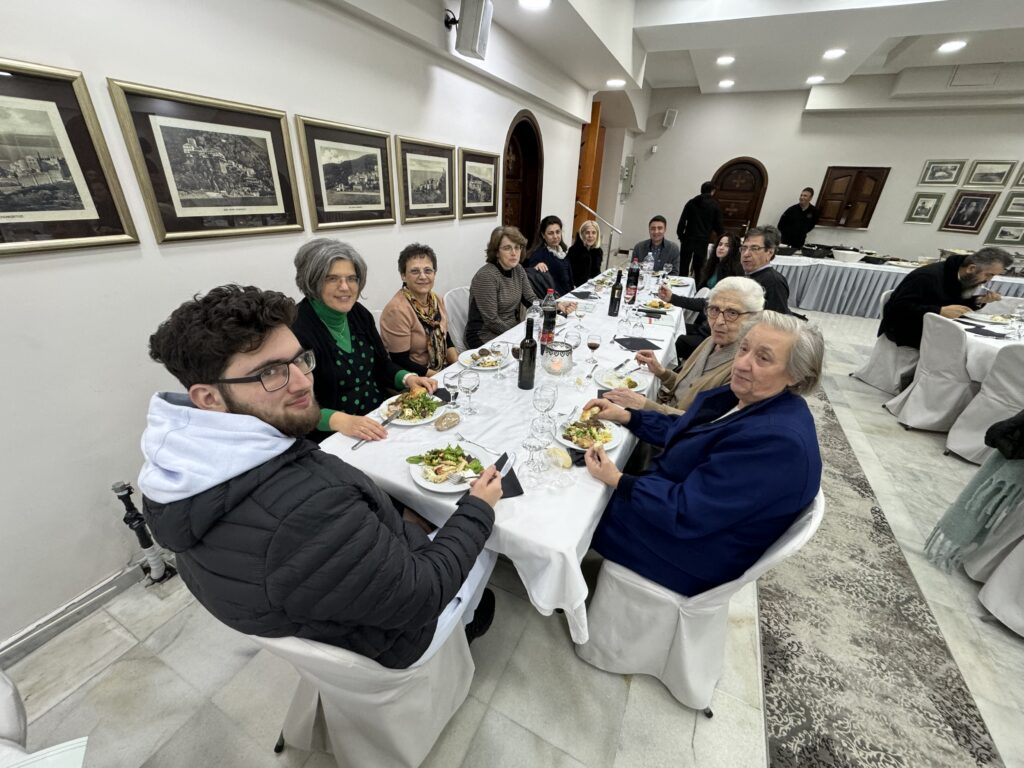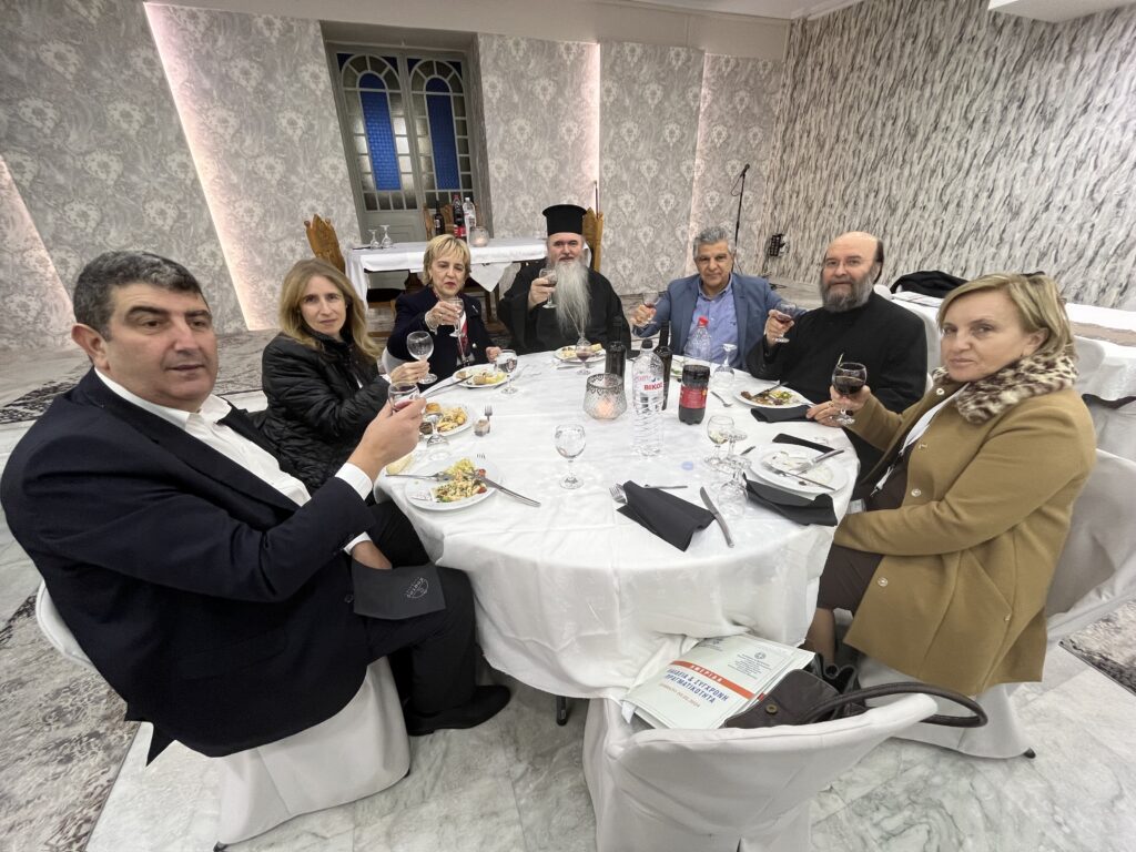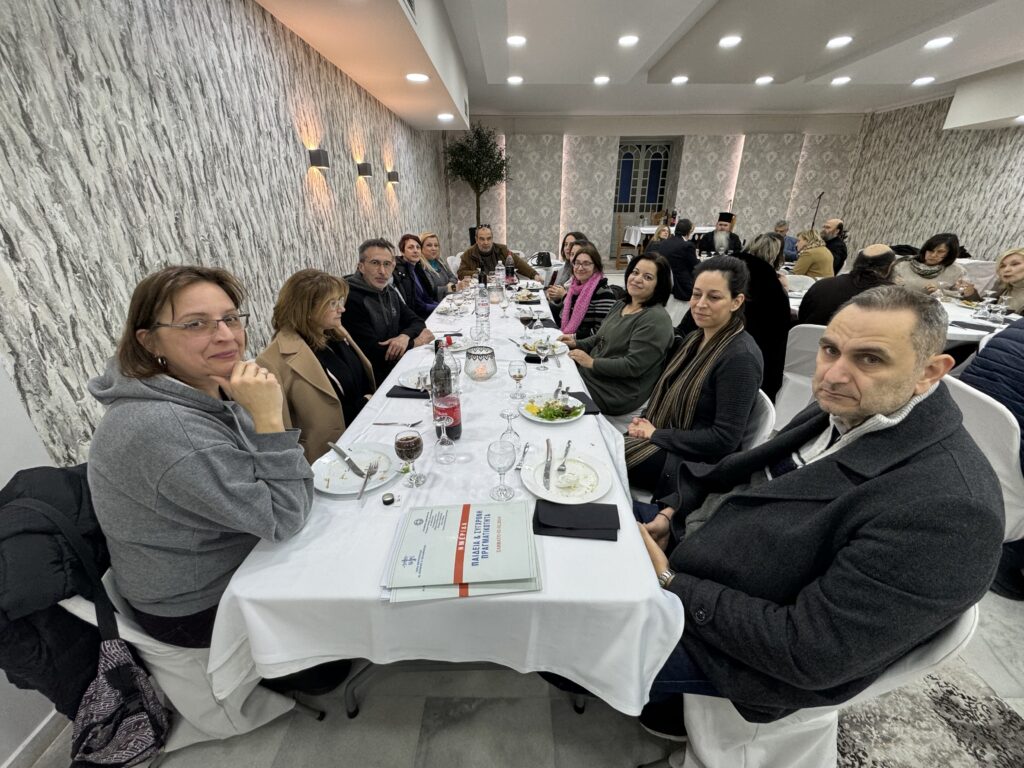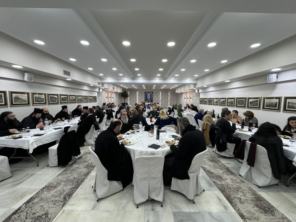 Το μεσημέρι, ο Σεβασμιώτατος Ποιμενάρχης, παρέθεσε γεύμα προς τιμήν των εισηγητών και των συνέδρων εκπαιδευτικών, στην φιλόξενη και καλαίσθητη αίθουσα «Ελαία Κατάκαρπος», του Ιερού Καθεδρικού Ναού Αγίου Νικολάου Αρετσούς.