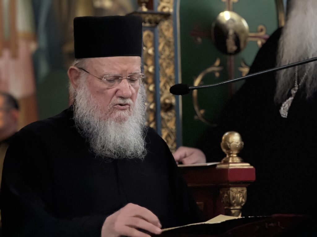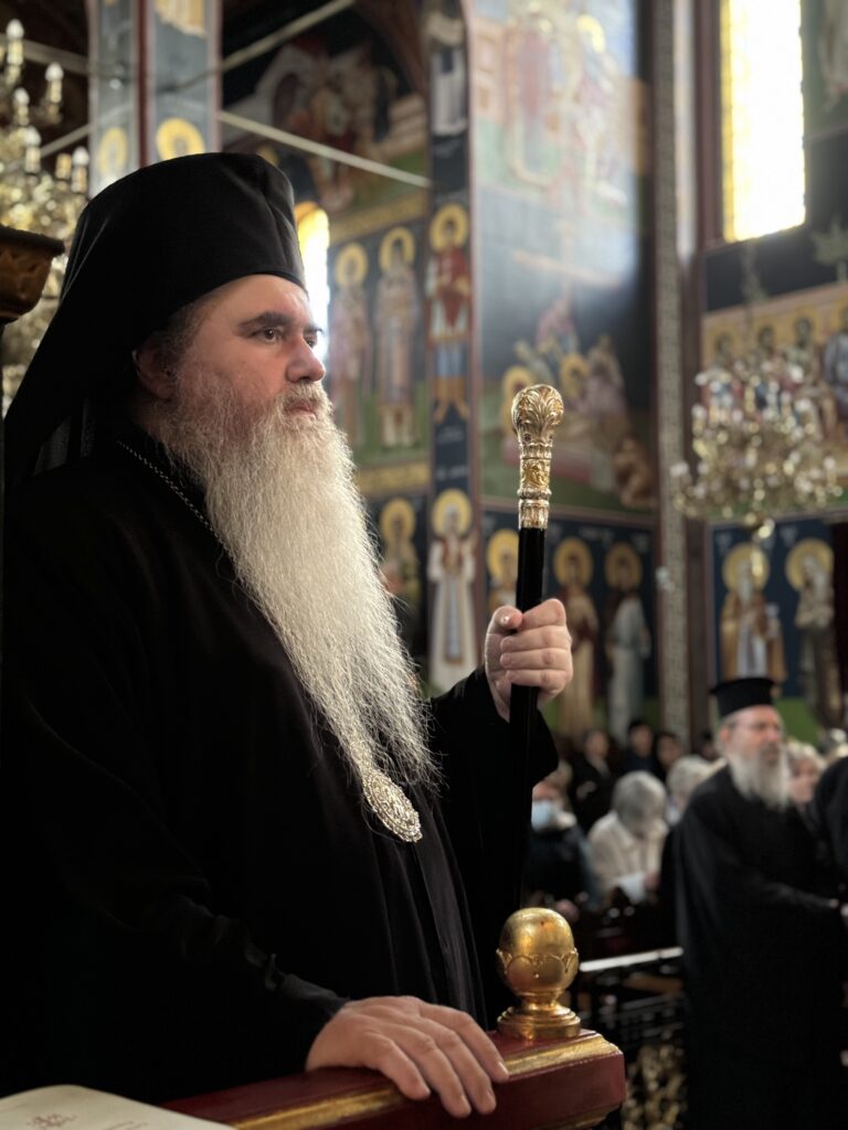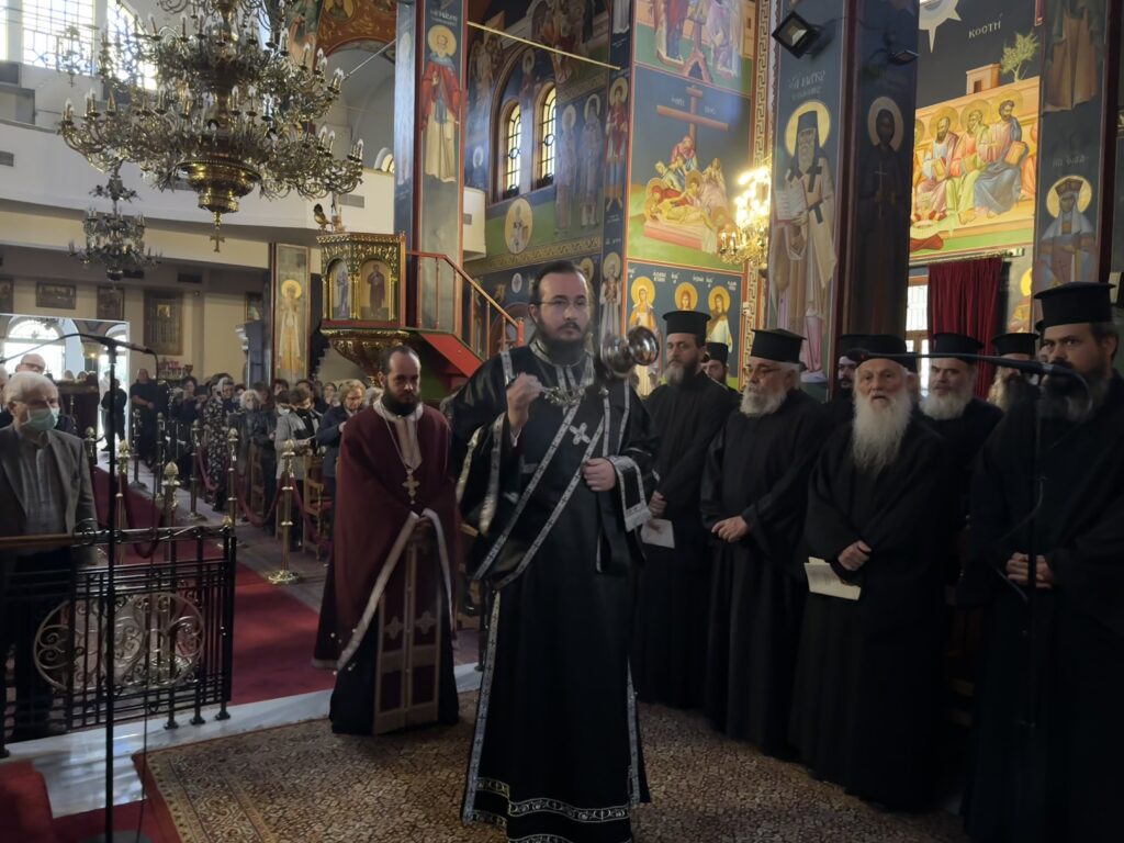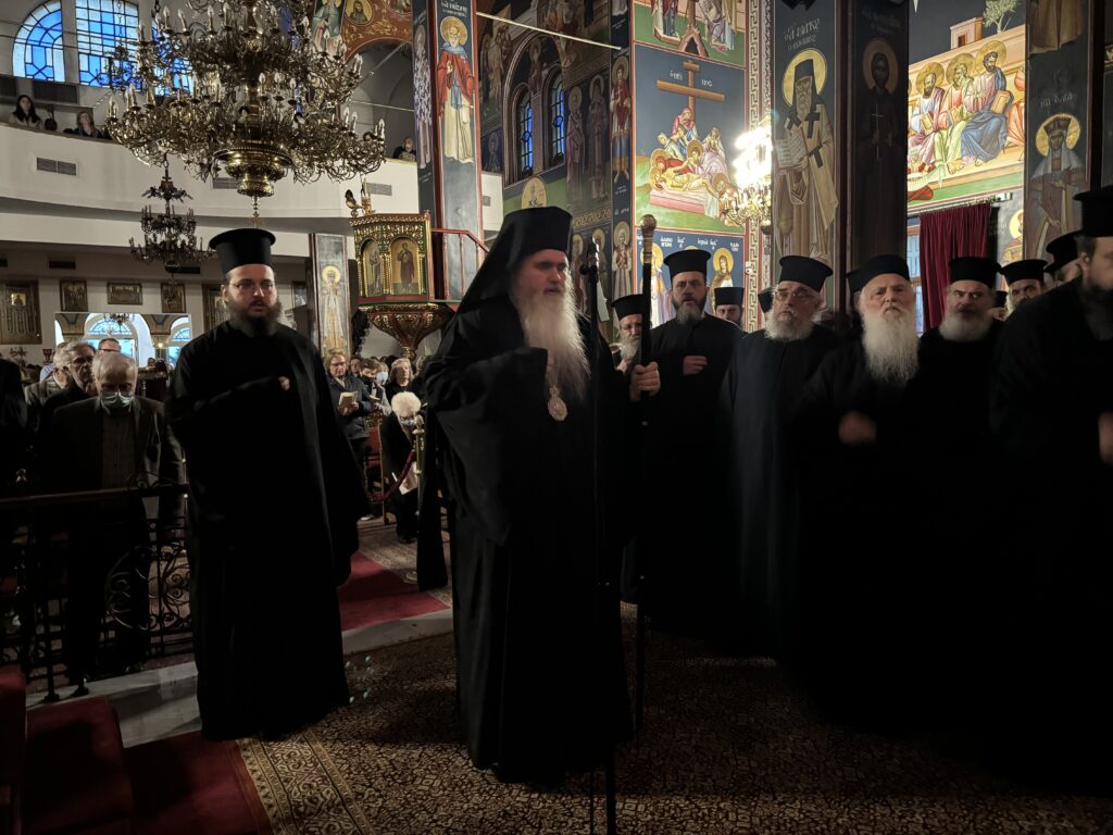 Στον Εσπερινό χοροστάτησε ο οικείος Ποιμενάρχης κ. Ιουστίνος, συμπροσευχομένου του ιερού κλήρου της τοπικής Εκκλησίας και πλήθους πιστού λαού.