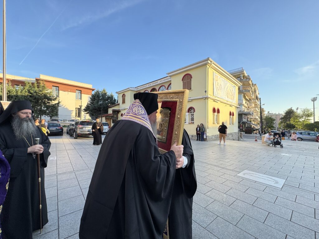 Προ του Εσπερινού, στα προπύλαια του Μητροπολιτικού Ναού, κλήρος και λαός, με προεξάρχοντα τον οικείο Ποιμενάρχη κ. Ιουστίνο, υποδέχθηκαν αντίγραφο της ιεράς, ιστορικής και θαυματουργής εικόνας της Παναγίας της Σουμελά.