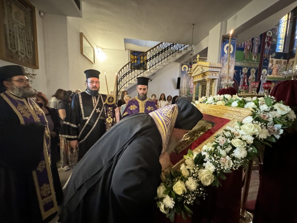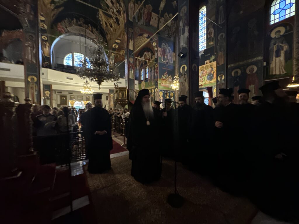 Στο τέλος του εσπερινού, οι πιστοί είχαν την ευκαιρία να λάβουν την ευλογία και τη συγχώρεση του π. Νήφωνος και να προσκυνήσουν ιερά λείψανα, που φυλάσσονται στην Ιερά Μητρόπολη.