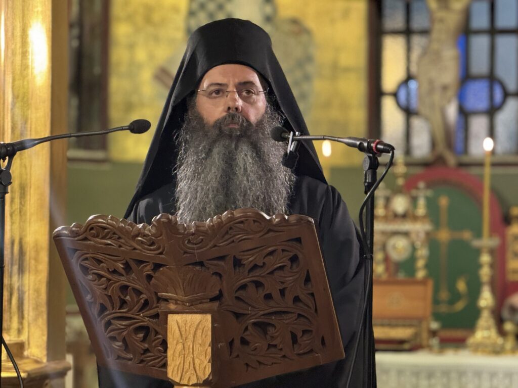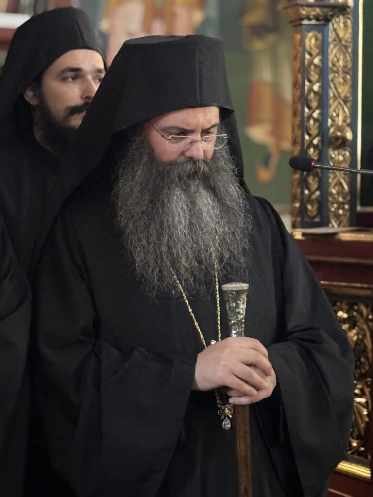 Ο Σεβασμιώτατος κ. Ιουστίνος καλωσόρισε με θερμούς λόγους τον εκλεκτό καλεσμένο ομιλητή και επεσήμανε τη στενή σύνδεση της τοπικής Εκκλησίας με τις μοναστικές πολιτείες του Αγίου Όρους, αλλά και με την Μετεωρίτικη μοναστική πολιτεία.