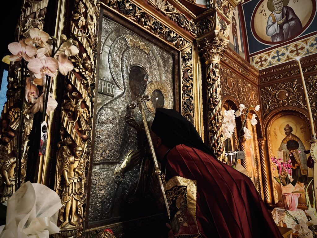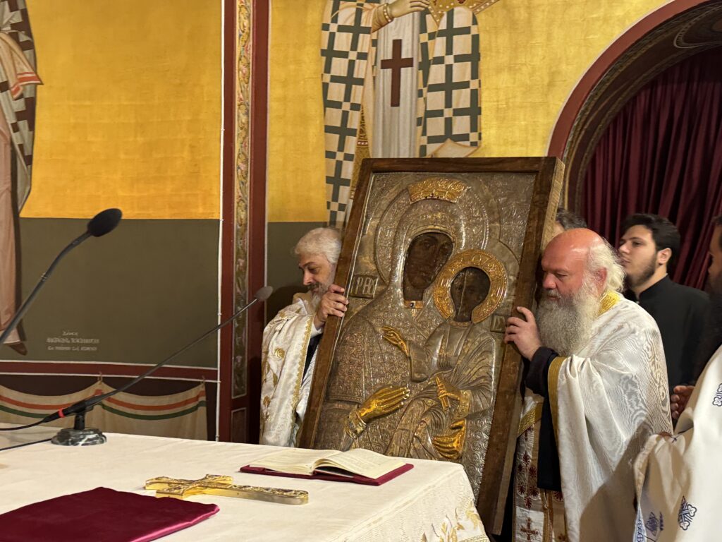 Ο επίσκοπος της Ανατολικής Θεσσαλονίκης καλωσόρισε με θερμούς λόγους τους Αρχιερείς του σεπτού Οικουμενικού Θρόνου στο παλλάδιο της θαυματουργού εικόνος της Παναγίας, κάνοντας εκτενή αναφορά στο θεομητορικό αυτό κειμήλιο.
