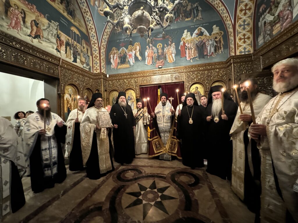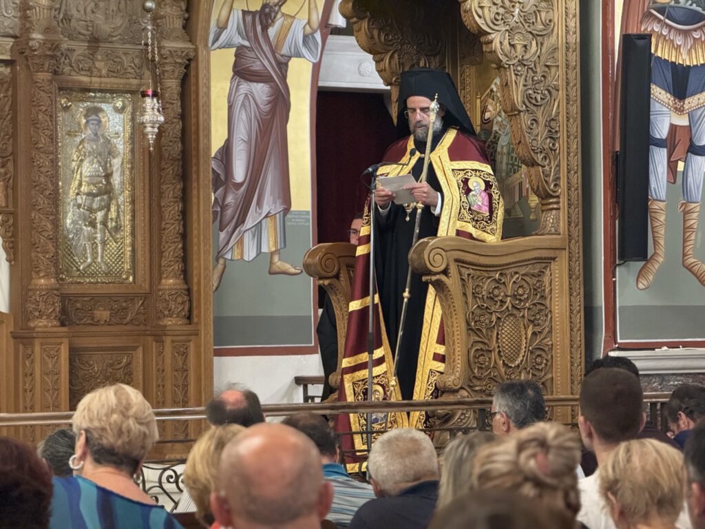 Του Εσπερινού και της Παρακλήσεως χοροστάτησε ο Θεοφιλέστατος Επίσκοπος Απαμείας κ. Παΐσιος, συγχοροστατούντων του Θεοφιλέστατου Επισκόπου Αλικαρνασσού κ. Αδριανού και του οικείου Ποιμενάρχου κ. Ιουστίνου.