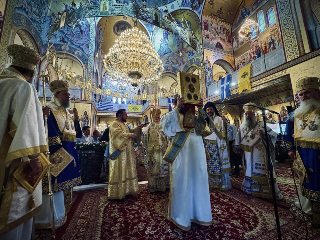Του πανηγυρικού Όρθρου και της Θείας Λειτουργίας προέστη ο Σεβασμιώτατος Μητροπολίτης Νεαπόλεως και Σταυρουπόλεως κ. Βαρνάβας, συλλειτουργούντων των Σεβασμιωτάτων Μητροπολιτών Νέας Ιωνίας και Φιλαδελφείας κ. Γαβριήλ, Νέας Ιερσέης κ. Αποστόλου, Θεσσαλονίκης κ. Φιλοθέου, των Θεοφιλεστάτων Επισκόπων Μπουκόμπας και Δυτικής Τανζανίας κ. Χρυσοστόμου και Ναζιανζού κ. Αθηναγόρα, του οικείου Ποιμενάρχου κ. Ιουστίνου και πλειάδος ιερέων και διακόνων.