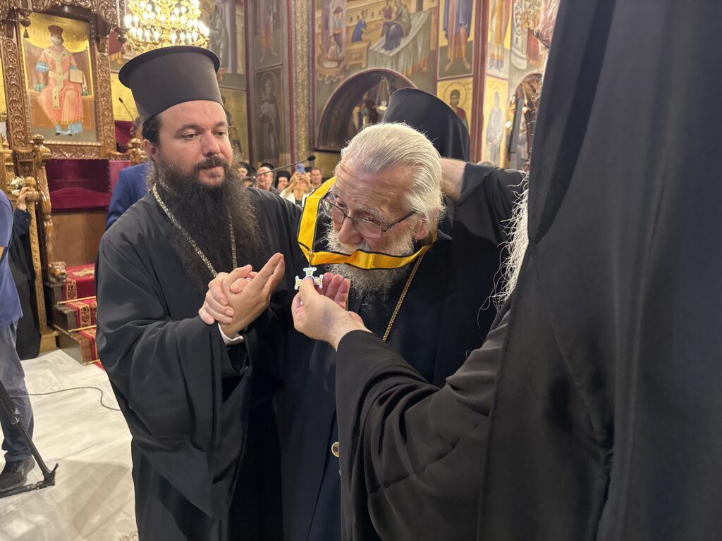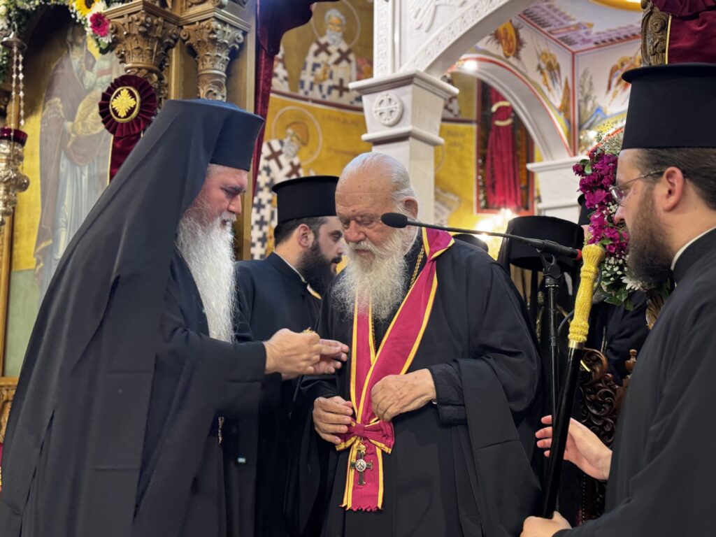 Σε ένδειξη ευγνωμοσύνης αλλά και υϊκής αφοσιώσεως και αγαπης, ο Σεβασμιώτατος, περικόσμησε τον Μακαριώτατο, με την Ανωτάτη Τιμή της τοπικής Εκκλησίας, τον Μεγαλόσταυρο, Πρώτης Τάξεως, του Αγίου Μεγαλομάρτυρος Ευγενίου του Τραπεζουντίου, μετ’ αστέρος της Παναγίας Φανερωμένης, και μια ποιμαντορική ράβδο.