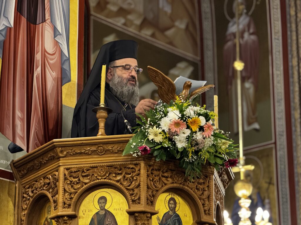 Ευλόγησε, τέλος, ολοκάρδια τον επίσκοπο, τον ιερό κλήρο, τους άρχοντες και τον πιστό λαό της Μητροπόλεως, ευχαριστώντας τους για τη θερμή υποδοχή.