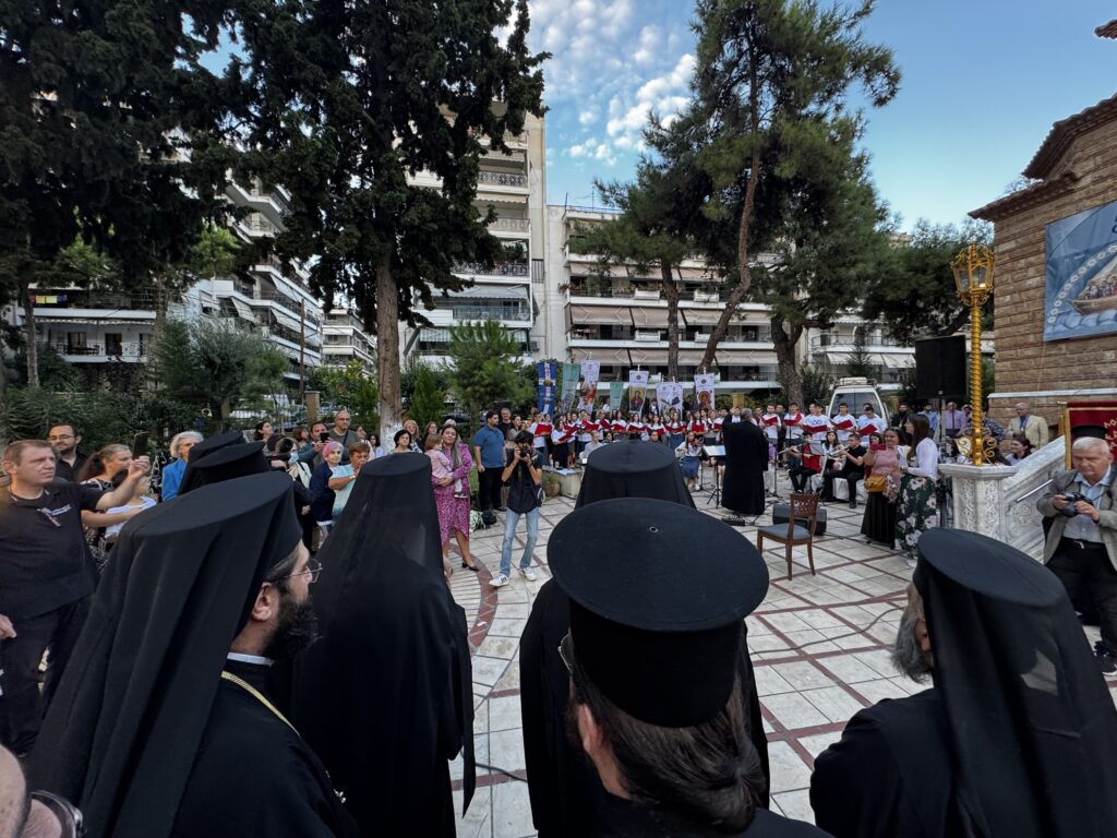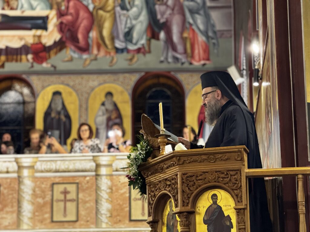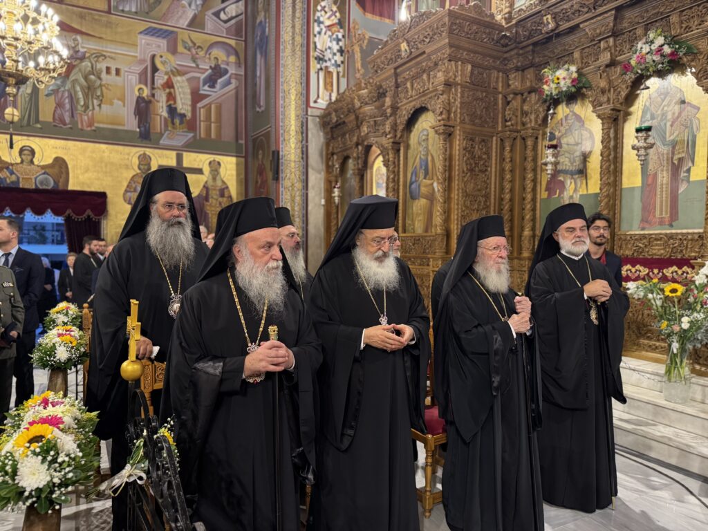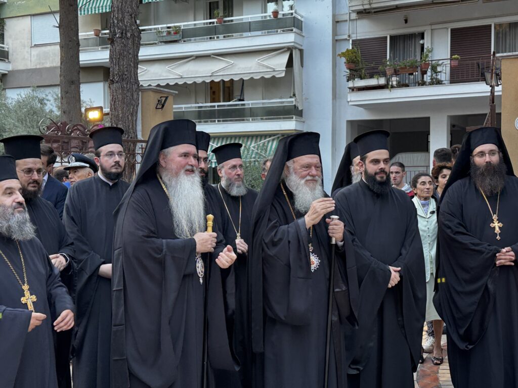 Κατά τον πανηγυρικό Αρχιερατικό Εσπερινό, ο Μακαριώτατος συνευχήθη εντός του Ιερού Βήματος. Χοροστάτησε δε, κατόπιν εντολής του, ο Σεβασμιώτατος Μητροπολίτης Θεσσαλονίκης κ. Φιλόθεος και συγχοροστατησαν οι Σεβασμιώτατοι Μητροπολίτες Βρυούλων κ. Παντελεήμων, Μιλήτου κ. Απόστολος, Κασσανδρείας κ. Νικόδημος, Ειρηνουπόλεως Δημήτριος, Βελεστίνου κ. Δαμασκηνός, Νεαπόλεως κ. Βαρνάβας, Κίτρους κ. Γεώργιος, Γρεβενών κ. Δαβίδ, Λαγκαδά κ. Πλάτων, ο Θεοφιλέστατος Επίσκοπος Αμορίου κ. Νικηφόρος και ο οικείος Ποιμενάρχης κ. Ιουστίνος.