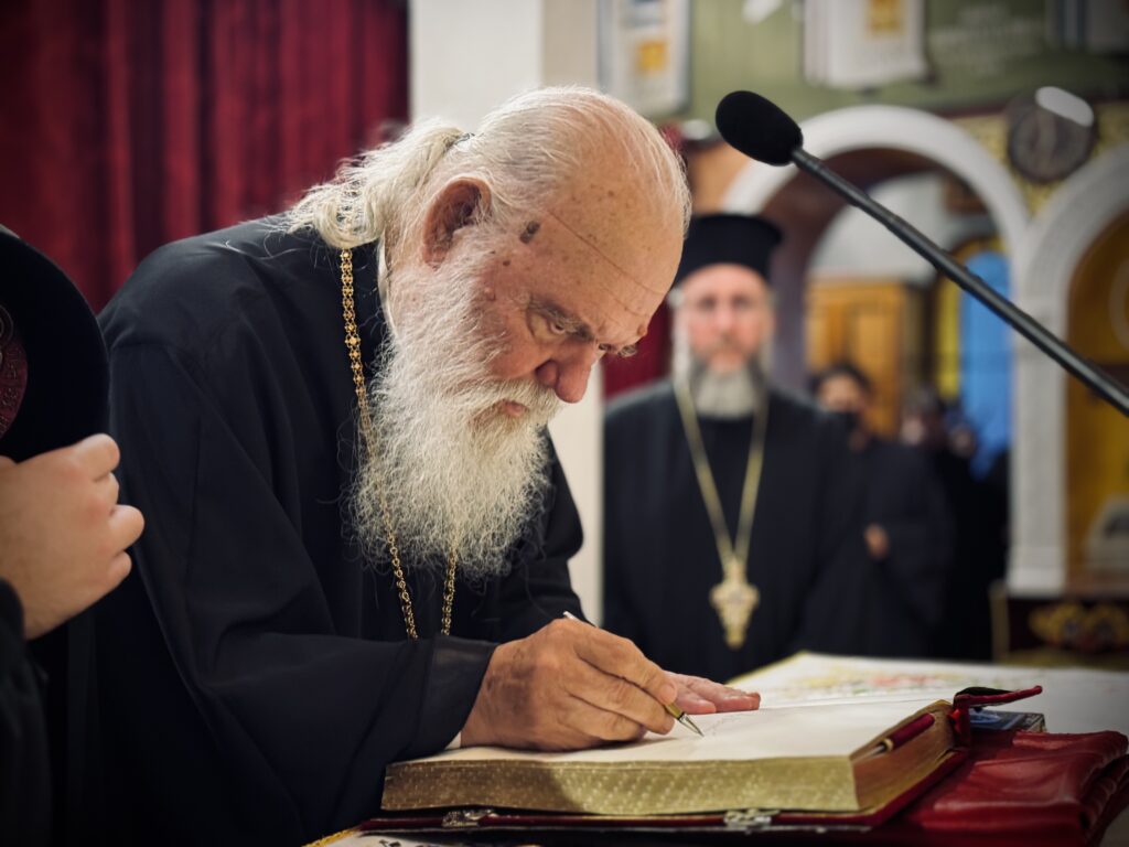 Ο οικείος Ποιμενάρχης κ. Ιουστίνος, στη σύντομη προσλαλιά του, καλωσόρισε με θερμούς λόγους τον Μακαριώτατο κ. Ιερώνυμο, επισημαίνοντας το σπουδαίο κοινωνικό έργο που επιτελεί, ως Προκαθήμενος της Ελλαδικής Εκκλησίας, την ιδιαίτερη φροντίδα του για τις κοινωνικές δομές και την αγάπη του για τον εν ανάγκη ευρισκόμενο πάσχοντα άνθρωπο.