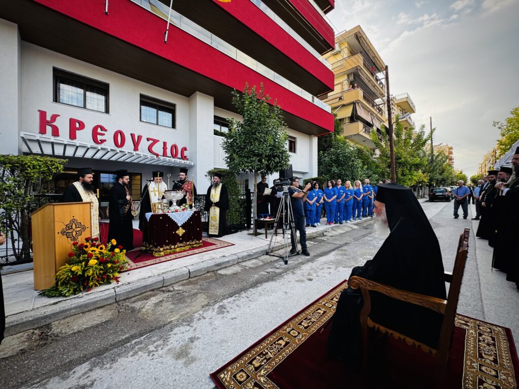 Στη συνέχεια επισκέφτηκε τον πλήρως ανακαινισθέντα «Κρεούζιο» Οίκο Ευγηρίας, όπου τελέστηκε ο αγιασμός και τα εγκαίνια των ανακαινισμένων κτηριακών και λειτουργικών δομών του Ιδρύματος.