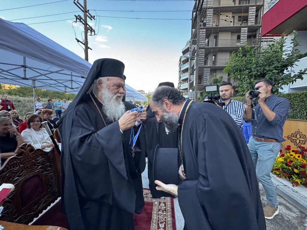 Πρώτος σταθμός του Μακαριωτάτου ήταν το νεοϊδρυθέν ΚΔΑΠ ΜΕΑ του Ιερού Καθεδρικού Ναού Αγίου Νικολάου Δέρκων – Αρετσούς. Εκεί, ο Μακαριώτατος είχε μια σύντομη συνομιλία με τον προϊστάμενο του Ιερού Ναού π. Δημήτριο Κατζιγκά και τους εργαζόμενους στο Κέντρο.