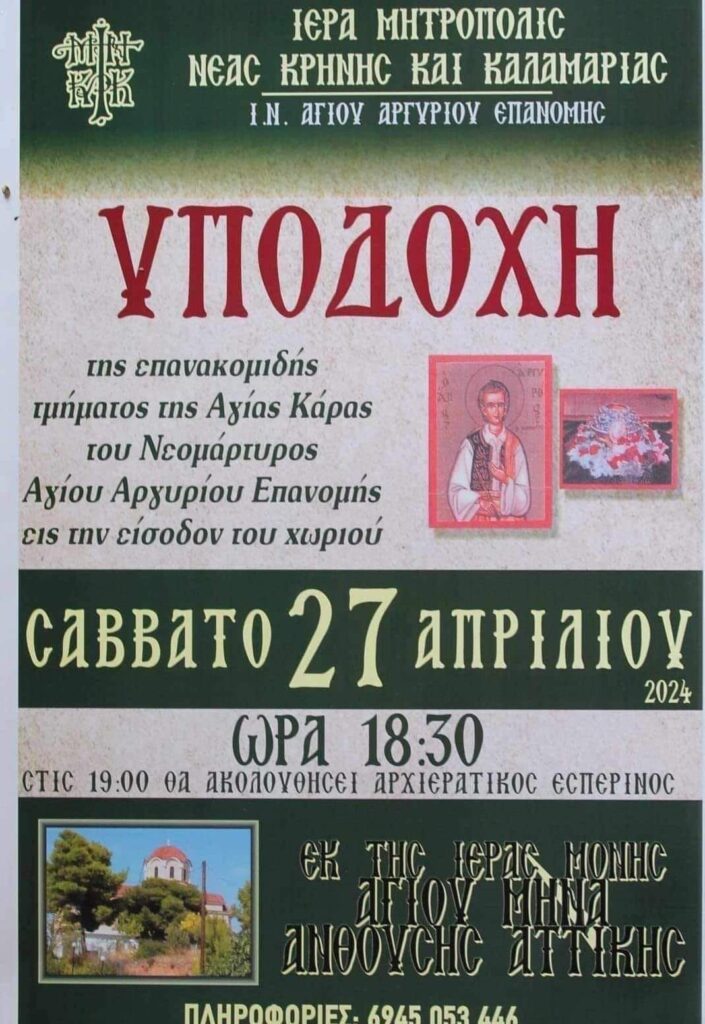 Υποδοχή τμήματος της Αγίας Κάρας του Αγίου Αργυρίου στην Επανομή