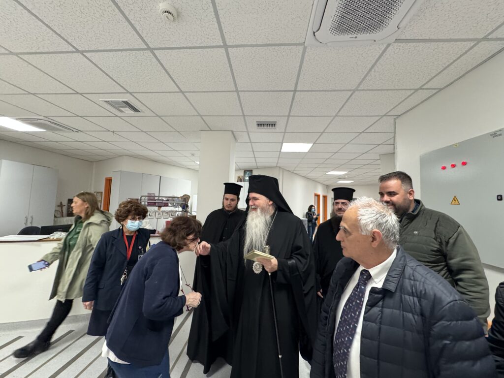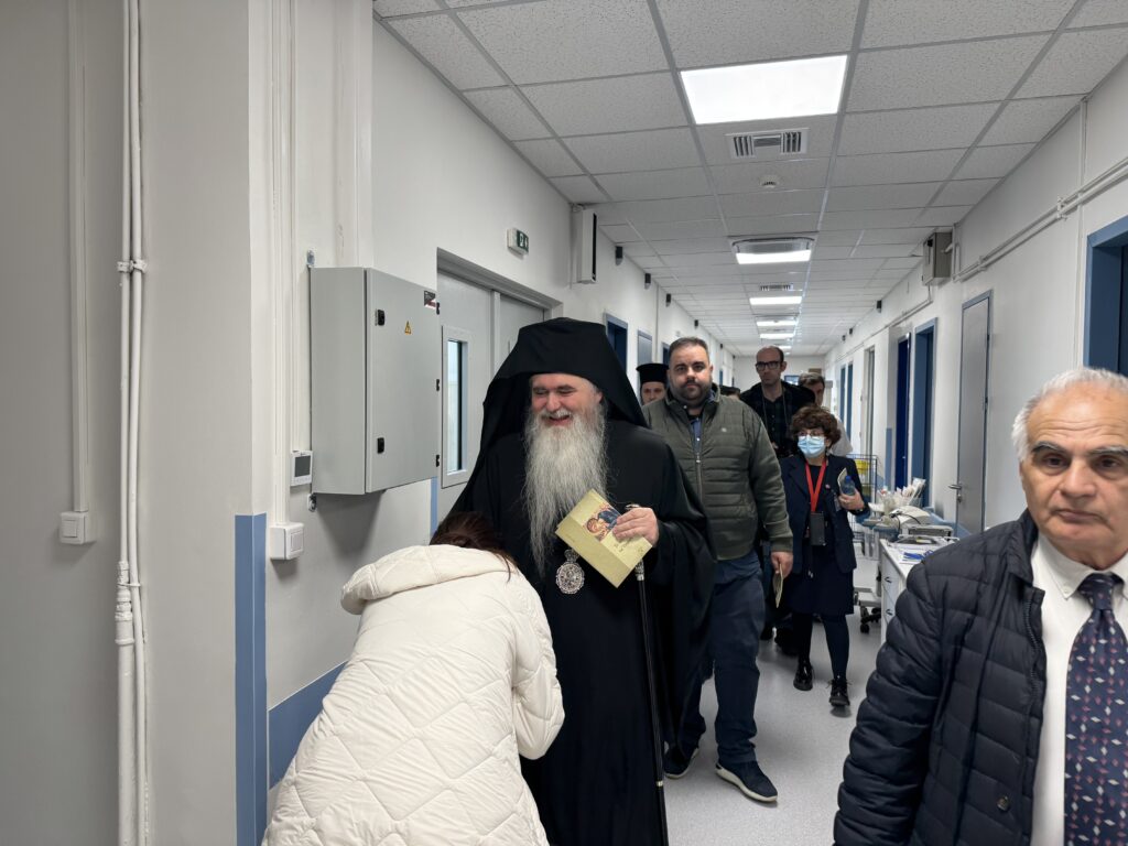 Μετά τη χρίση, ο Σεβασμιώτατος, συνοδευόμενος από τη Δήμαρχο Καλαμαριάς και από μέλη της Διοίκησης του Νοσοκομείου, επισκέφτηκαν τις πλήρως ανακαινισμένες πτέρυγες του Νοσοκομείου, ευχήθηκε στους ασθενείς για τις εορτές, ενώ, αργότερα, ο εφημέριος-ιερέας του Νοσοκομείου επισκέφτηκε όλες τις πτέρυγες των ασθενών, χρίοντας τους ασθενείς.