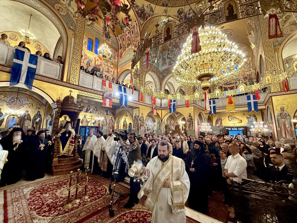 Εν συνεχεία, ο Σεβασμιώτατος Ποιμενάρχης, με λόγος θερμούς και φιλαδελφους, καλωσόρισε τους Αγίους Αρχιερείς, τους ευχαρίστησε για την αποδοχή της προσκλήσεως του και για τον κόπο της ελεύσεως τους και βαθιά συγκινημένος αναφέρθηκε αναλυτικά στο γεγονός της επιστροφής της Παναγίας στο σπίτι Της, κάνοντας νύξεις στις δυσκολίες και τους πειρασμούς που προέκυψαν με την ανακοίνωση της απόφασης για συντήρηση του Θεομητορικού Εικονίσματος, αλλά και στις ευλογίες που προέκυψαν κατά τη διάρκεια της συντήρησης.