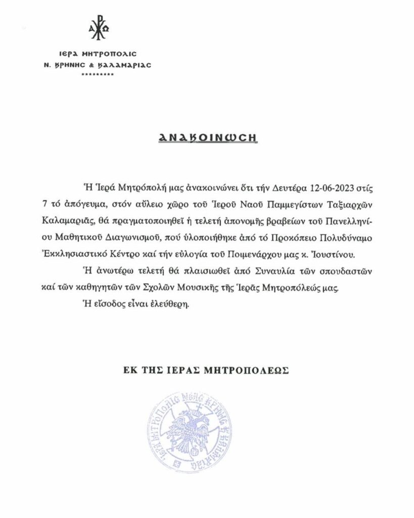Τελετή απονομής βραβείων πανελληνίου μαθητικού διαγωνισμού