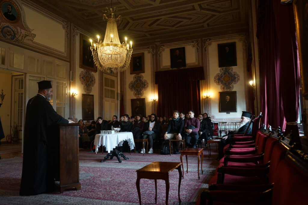Με πόνο καρδιάς αναφέρθηκε σε καίρια θέματα που απασχολούν και συγκλονίζουν τον σύγχρονο κόσμο, ενώ, στο τέλος, βαθύτατα συγκινημένος, ευλόγησε τους παριστάμενους φοιτητές, επισημαίνοντας τους την ιερά υποχρέωση τους να τιμούν την πνευματική μήτρα τους, το Οικουμενικό Πατριαρχείο και να επισκέπτονται τακτικά τον Κωνσταντινούπολη.