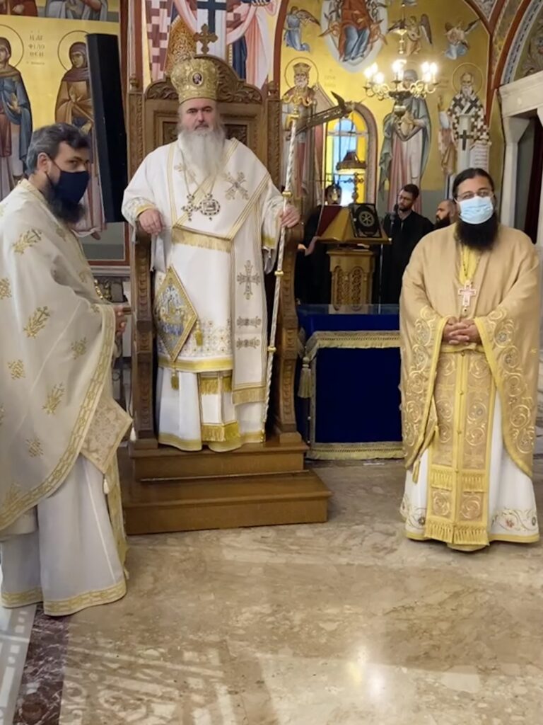 Στον Εσπερινό χοροστάτησε ο οικείος ποιμενάρχης Σεβασμιώτατος Μητροπολίτης Νέας Κρήνης και Καλαμαριάς κ. Ιουστίνος και κήρυξε τον θείο λόγο στηρίζοντας τον πιστό λαό υπενθυμίζοντάς του ότι χωρίς Χριστό καμία προκοπή και πρόοδος δεν μπορεί να υπάρξει στην πατρίδα μας.