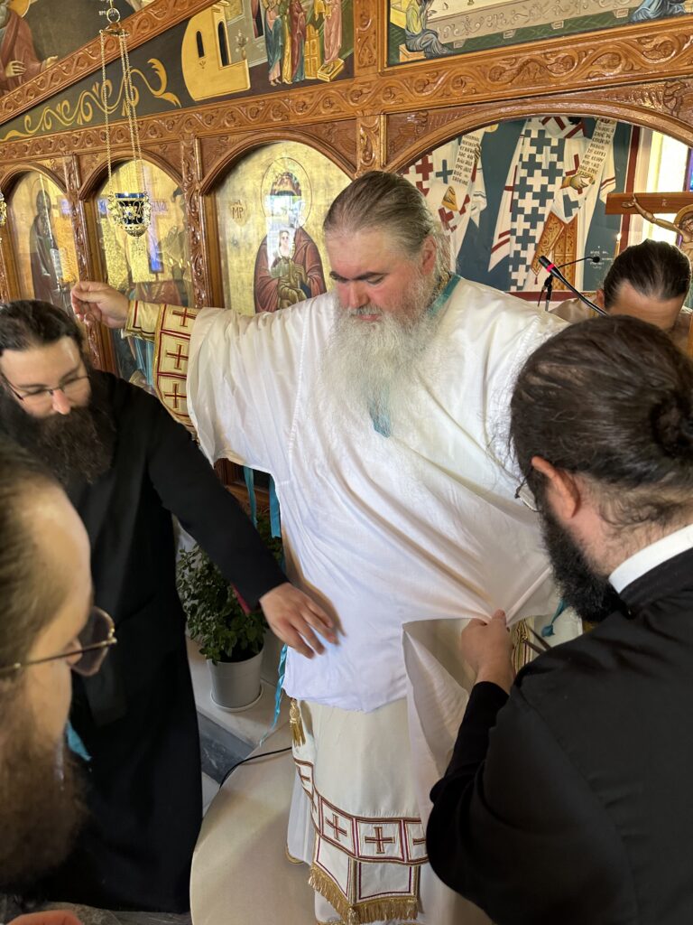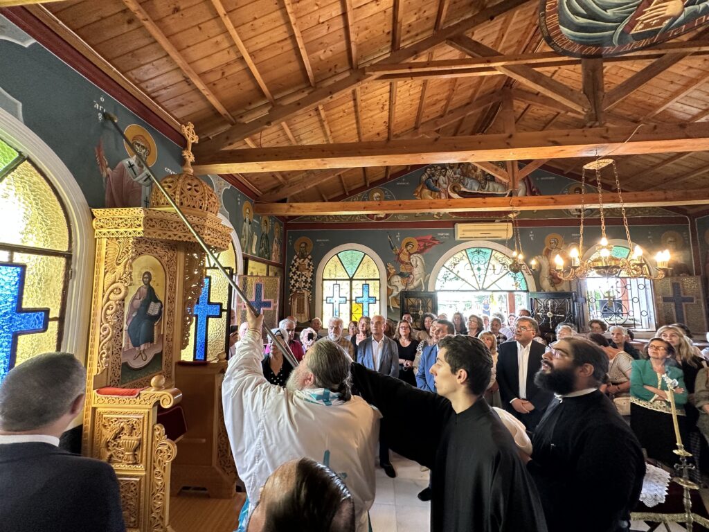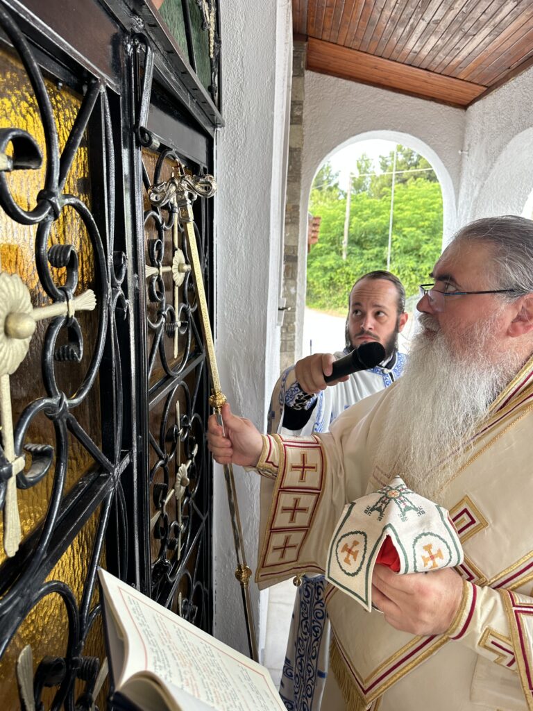 Την επομένη, τελέστηκε η Ακολουθία των Εγκαινίων και η πρώτη Αρχιερατική Θεία Λειτουργία στο εγκαινιασθέν, πλέον, Παρεκκλήσιο, προεξάρχοντος του Οικείου Ποιμενάρχου, Μητροπολίτου κ. Ιουστίνου, με τη συμμετοχή Ιερέων της Μητροπόλεως, και σχεδόν του συνόλου των κατοίκων του οικισμού.