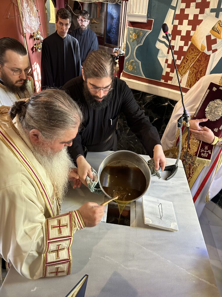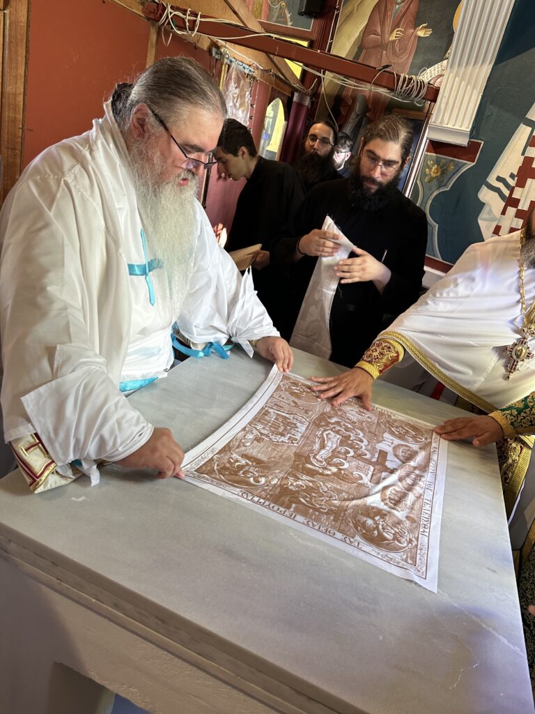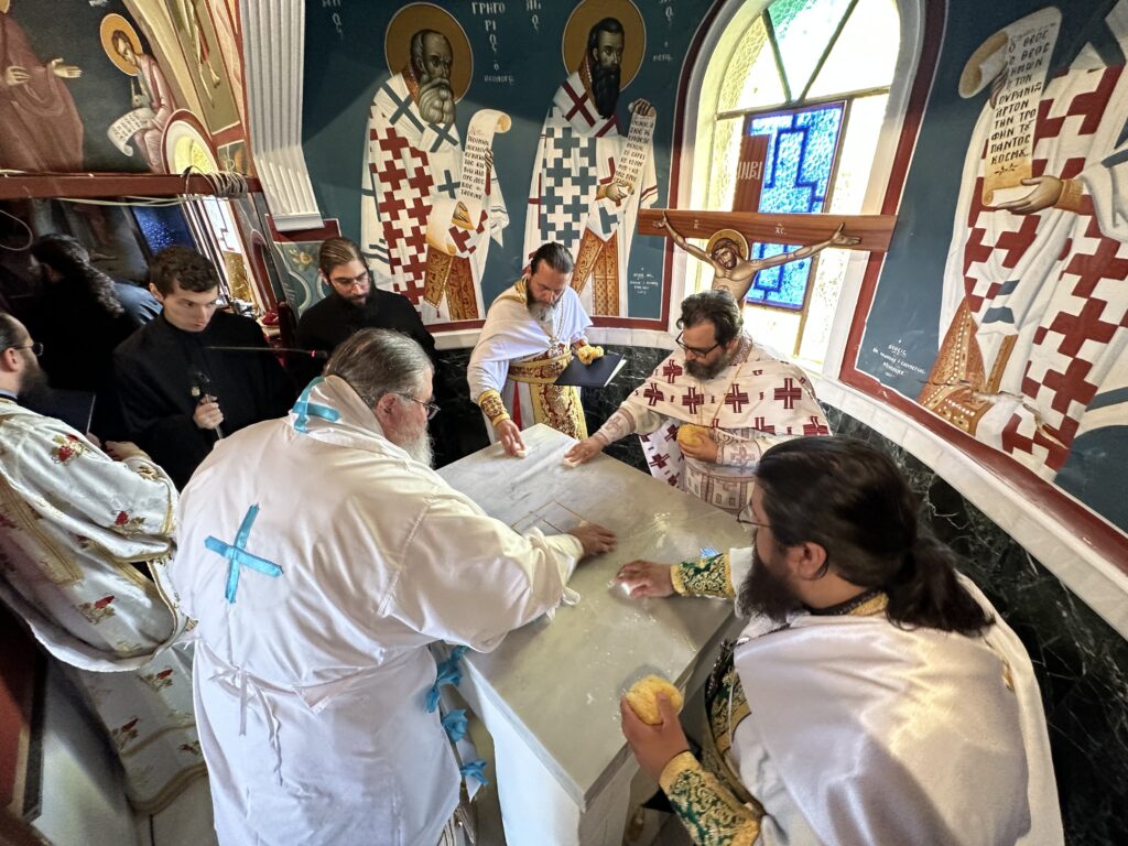Καθ’ όλη τη διάρκεια των εγκαινίων ο Σεβασμιώτατος κ. Ιουστίνος ερμήνευε τις λειτουργικές πράξεις που τελούνταν και επεσήμανε την αξία της καθιερώσεως ιερού Θυσιαστηρίου.