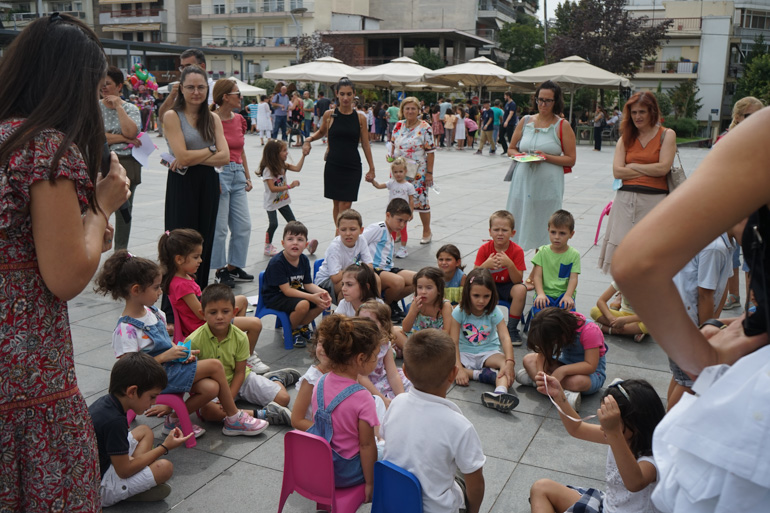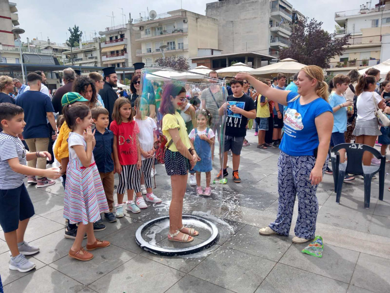 Η Πλατεία Δημαρχείου μετατράπηκε σε μια μεγάλη γειτονιά με πλήθος δραστηριοτήτων, εργαστήρια κατασκευών, origami, επιτραπέζια και επιδαπέδια παιχνίδια, αθλοπαιδιές, δρώμενα με γιγαντιαίες σαπουνόφουσκες, μπαλονοκατασκευές, ομαδικό παιχνίδι θησαυρού, διαδραστικές ηχοϊστορίες και πολλές άλλες εκπλήξεις!
