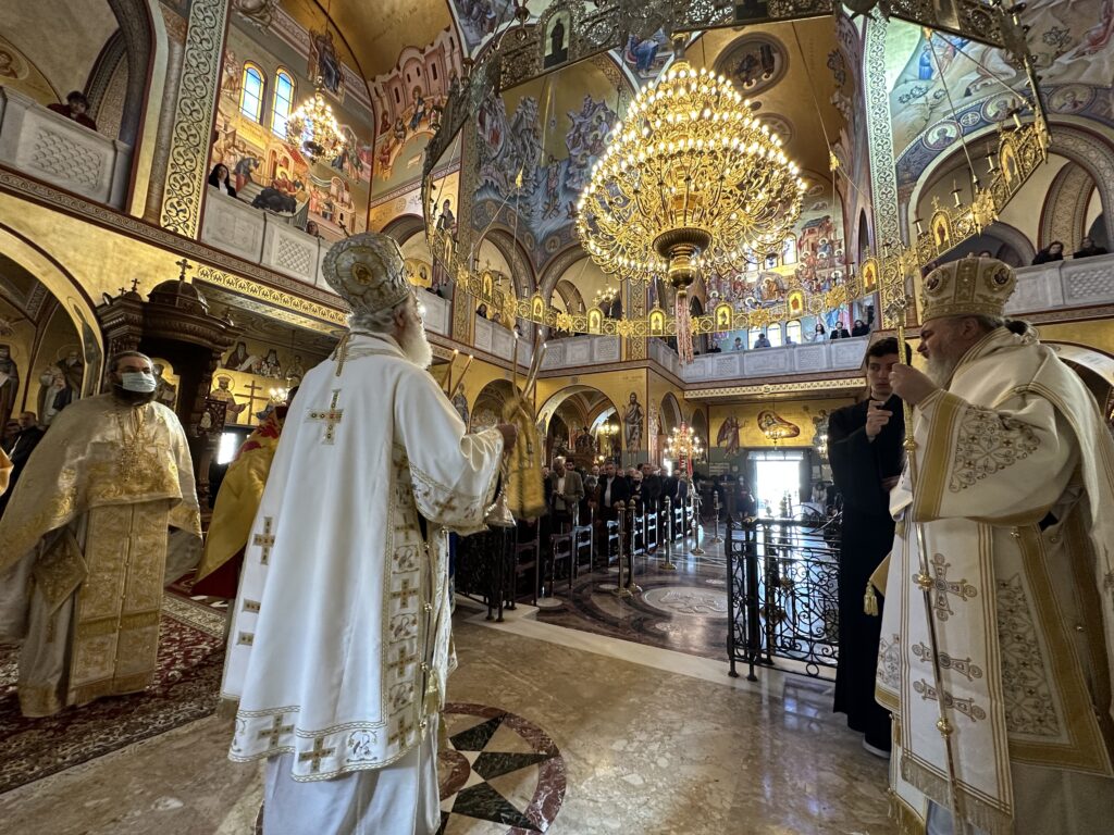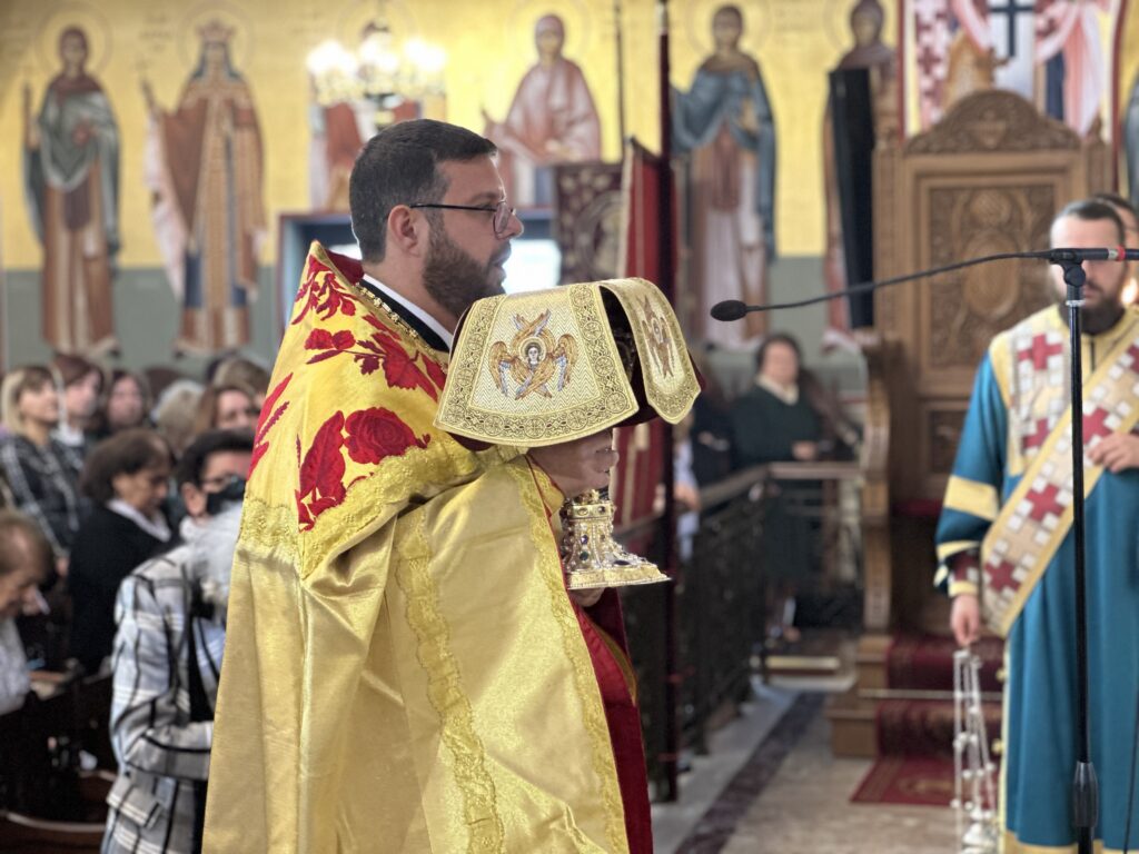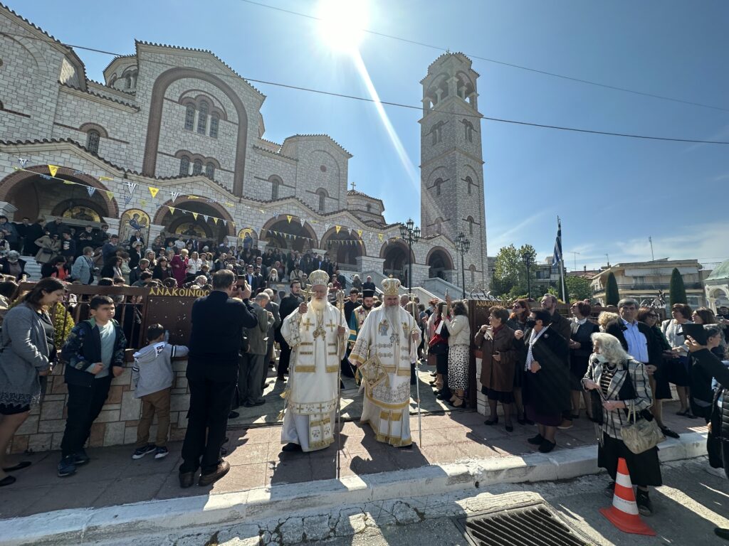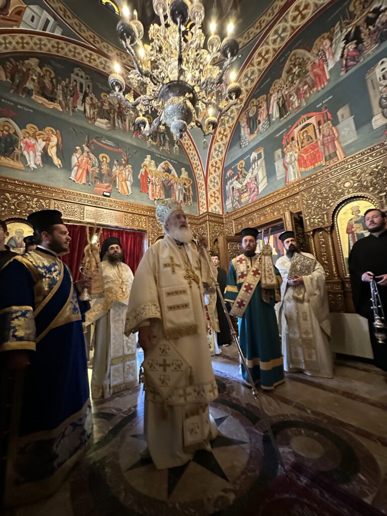 Την κυριώνυνο ημέρα τελέστηκε δισαρχιερατική πανηγυρική Θεία Λειτουργία, προεξάρχοντος του προσκεκλημένου Αρχιερέως Σεβασμιωτάτου Μητροπολίτου Αρκαλοχωρίου, Καστελλίου και Βιάννου κ.κ. Ανδρέου, συλλειτουργούντος δε του οικείου ποιμενάρχου, Σεβασμιωτάτου Μητροπολίτου Νέας Κρήνης και Καλαμαριάς κ.κ. Ιουστίνου.