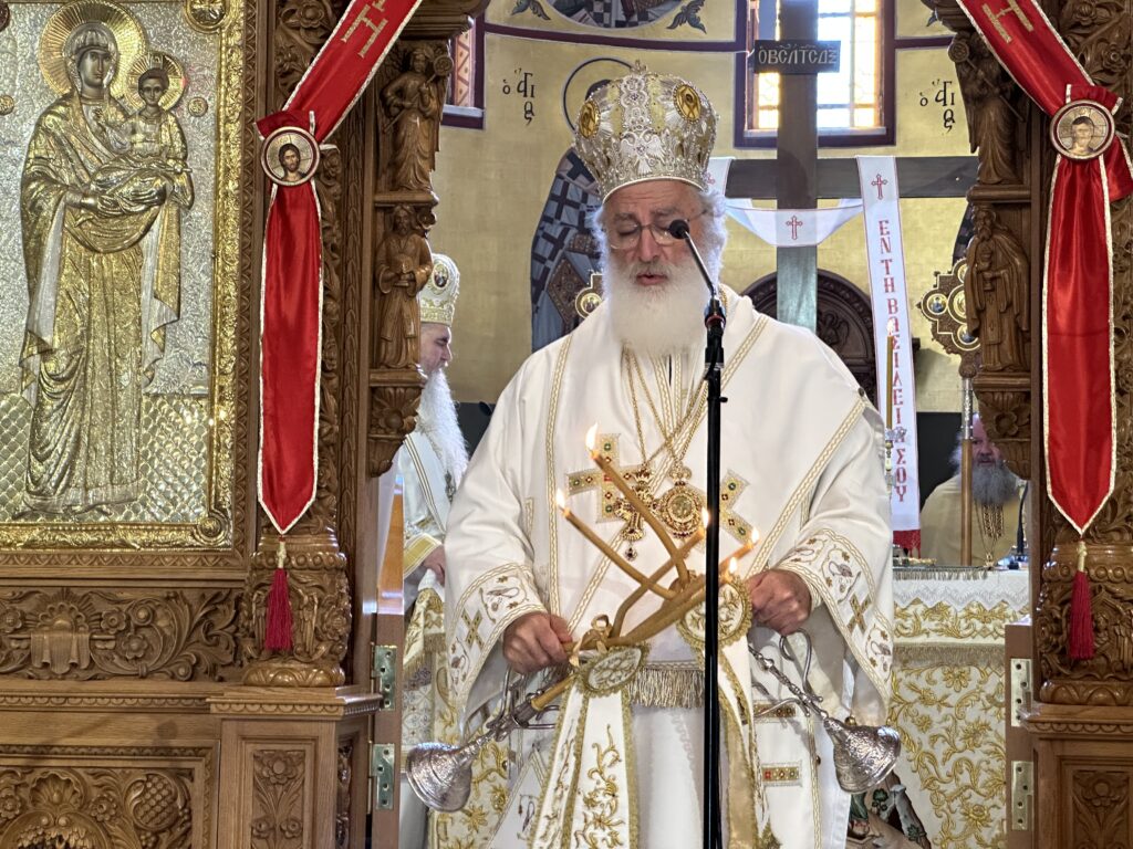 Αφ’ εσπέρας τελέστηκε ο Πανηγυρικός Εσπερινός, στον οποίο χοροστάτησε και κήρυξε τον θείο λόγο ο Σεβασμιώτατος Μητροπολίτης Βρυούλων κ.κ. Παντελεήμων.