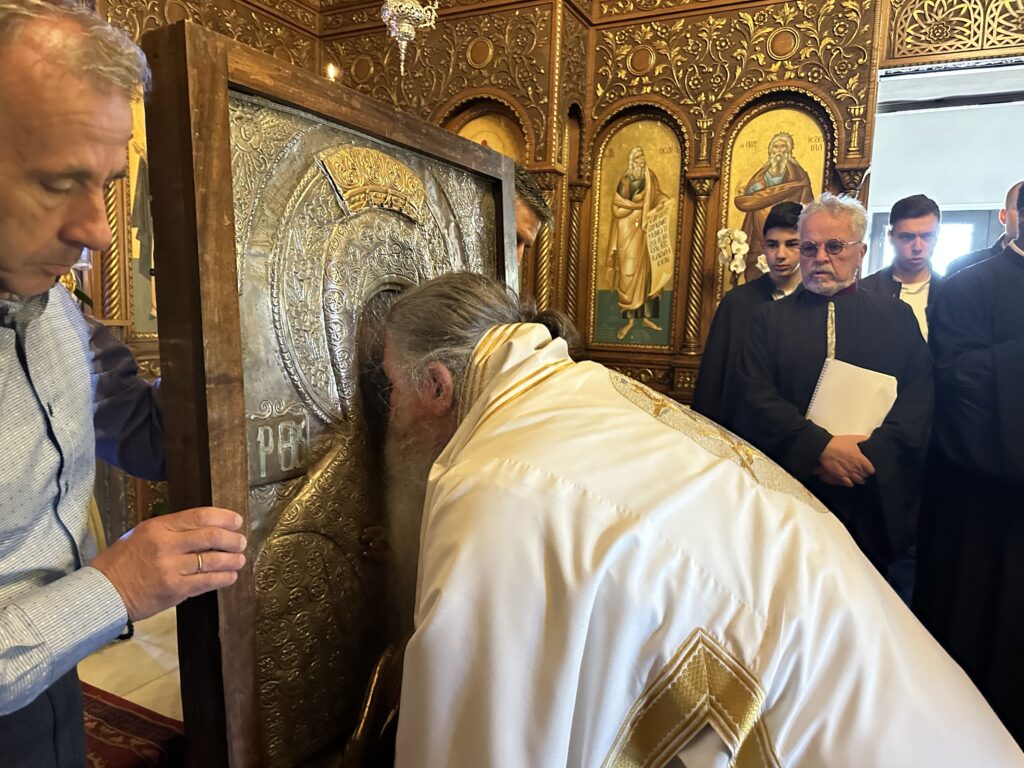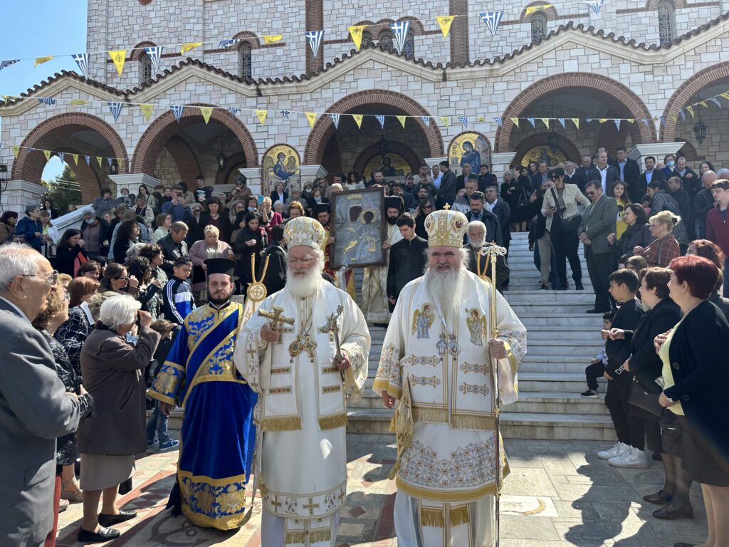 Η πανήγυρις ολοκληρώθηκε με σύντομη λιτάνευση του ιερού σεβάσματος της Παναγίας πέριξ του Ιερού Ναού.
