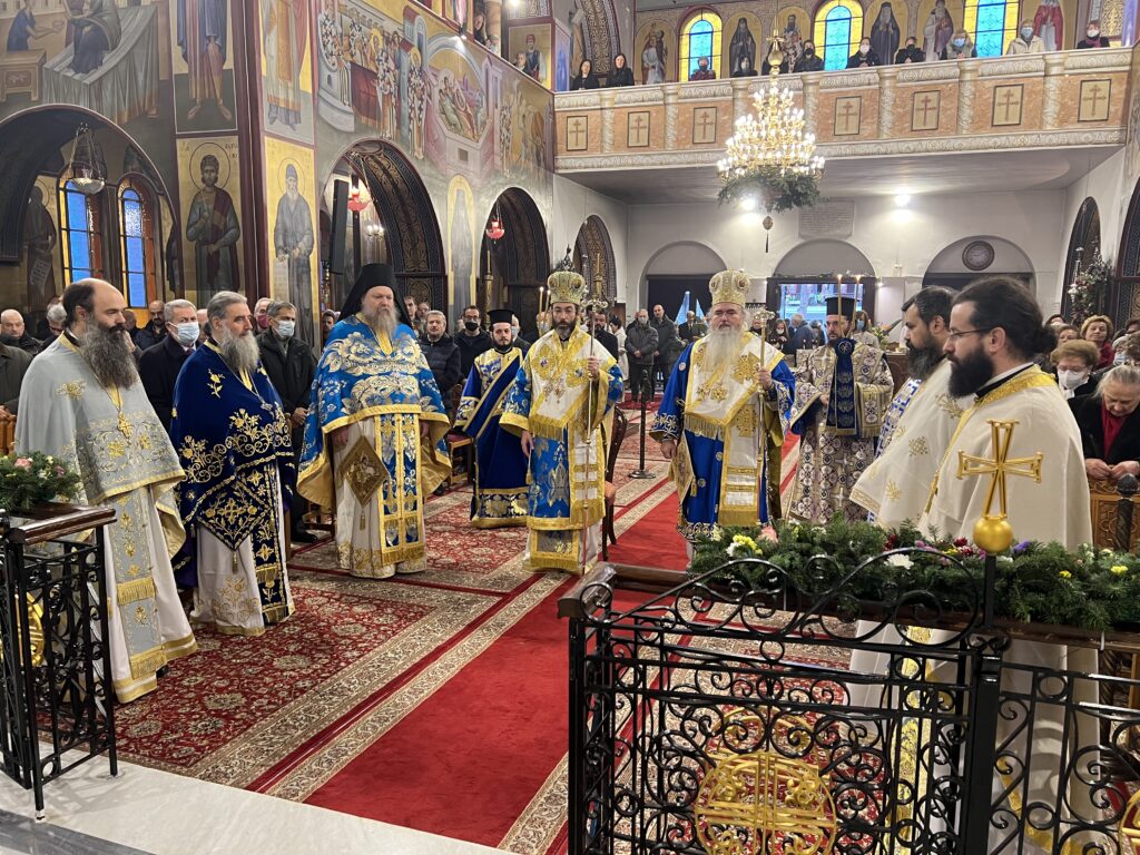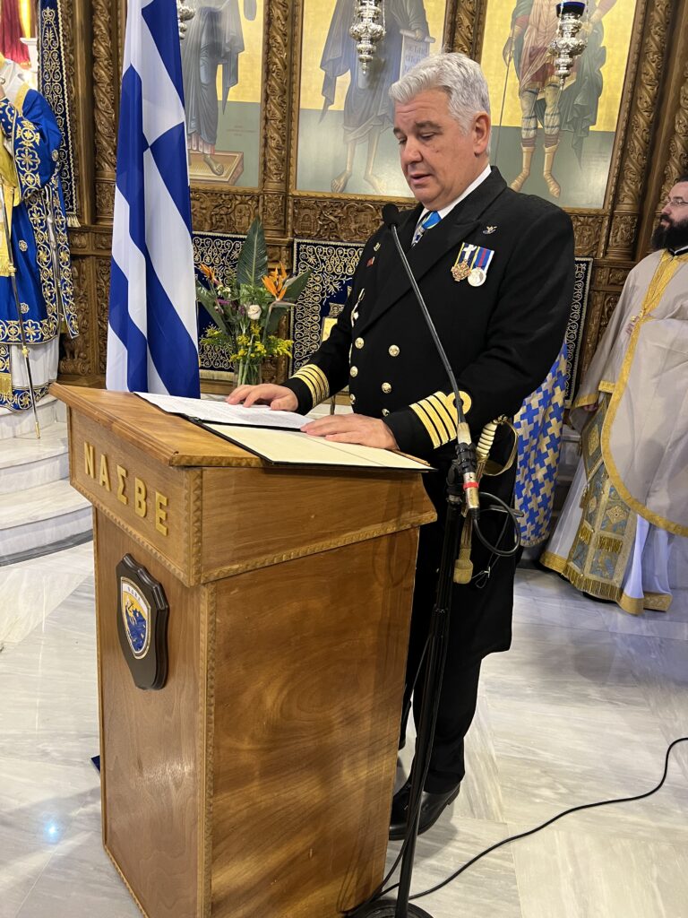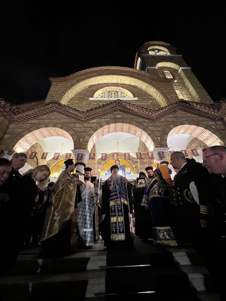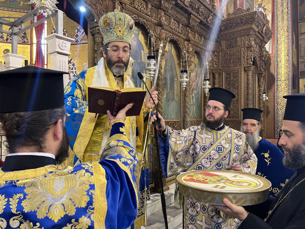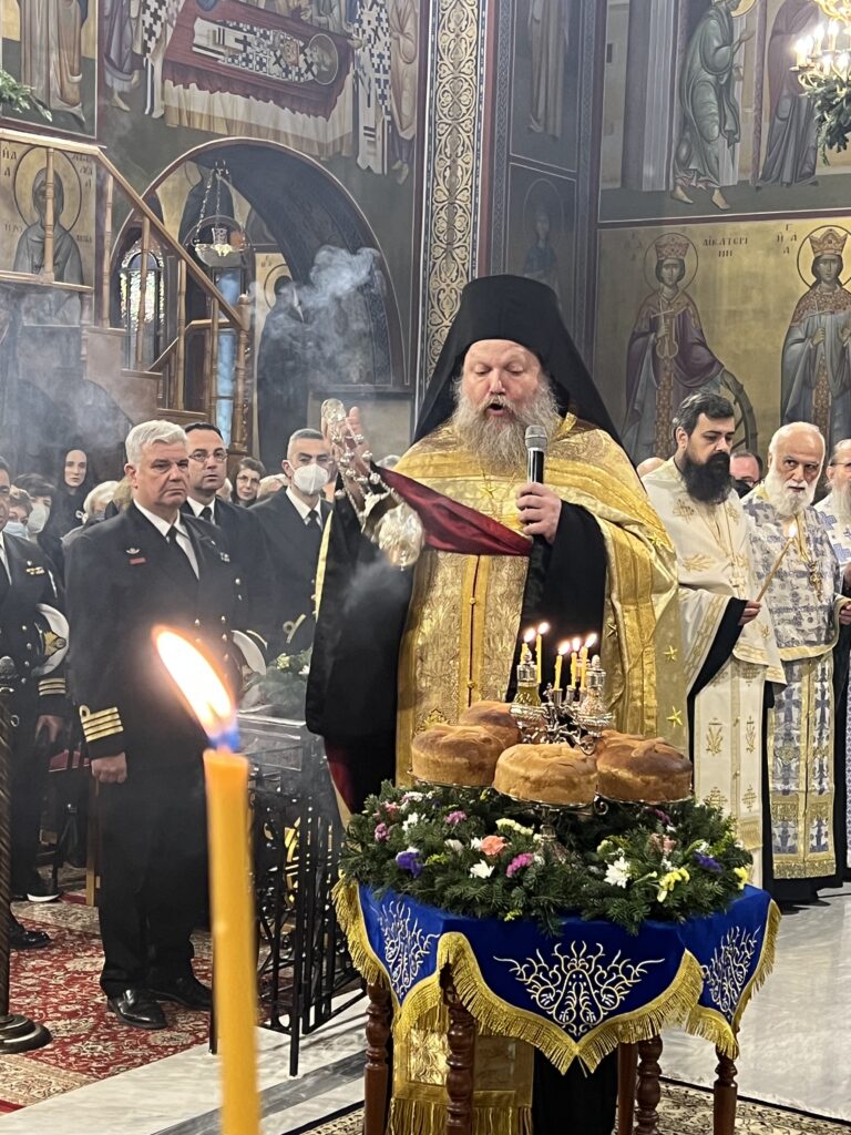 Προσκεκλημένος του οικείου Ποιμενάρχου κ. Ιουστίνου ήταν ο Σεβ. Μητροπολίτης Σαράντα Εκκλησιών κ. Ανδρέας, ο οποίος χοροστάτησε κατά τον Μ. Πανηγυρικό Εσπερινό, ιερούργησε στην θ. Λειτουργία και κήρυξε τον θείο λόγο. Μετά το πέρας της θ. Λειτουργίας τελέσθηκε Δοξολογία για το Πολεμικό μας Ναυτικό και τον Ναυτικό Σταθμό Β. Ελλάδος (πρώην ΝΔΒΕ).