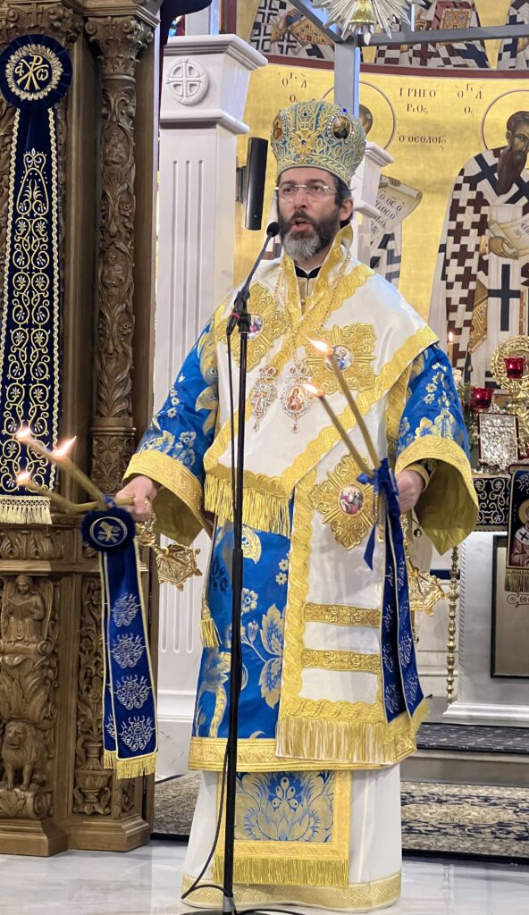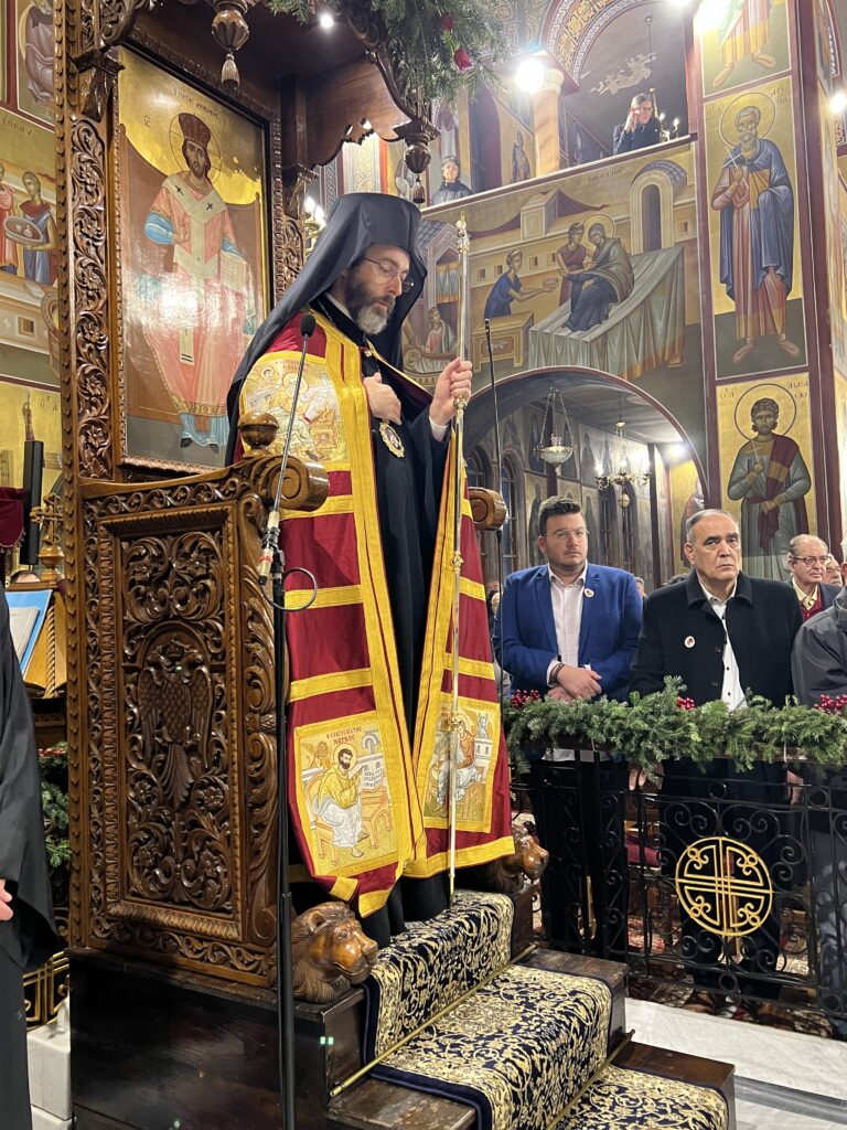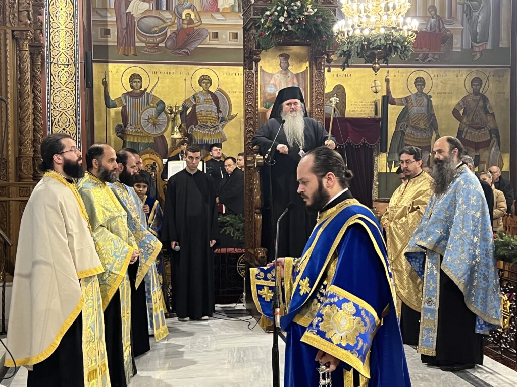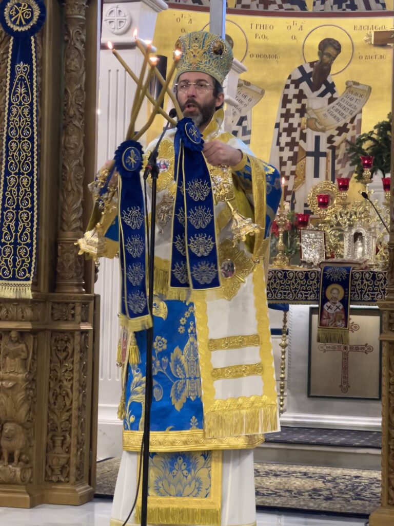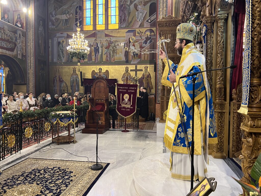 Προσκεκλημένος του οικείου Ποιμενάρχου κ. Ιουστίνου ήταν ο Σεβ. Μητροπολίτης Σαράντα Εκκλησιών κ. Ανδρέας, ο οποίος χοροστάτησε κατά τον Μ. Πανηγυρικό Εσπερινό, ιερούργησε στην θ. Λειτουργία και κήρυξε τον θείο λόγο. Μετά το πέρας της θ. Λειτουργίας τελέσθηκε Δοξολογία για το Πολεμικό μας Ναυτικό και τον Ναυτικό Σταθμό Β. Ελλάδος (πρώην ΝΔΒΕ).