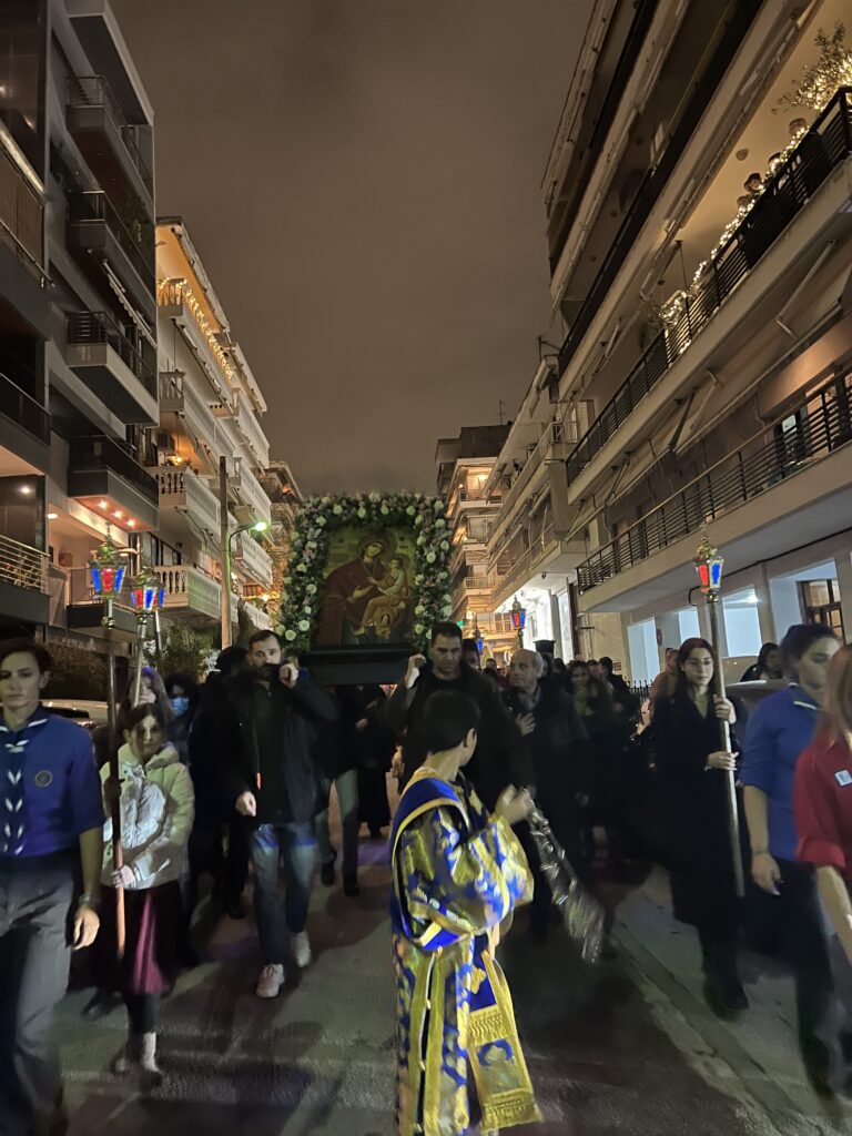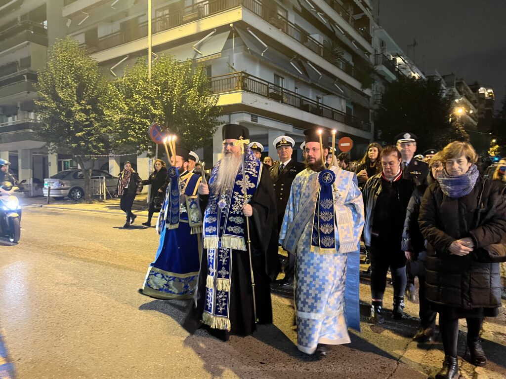 Του μεθέορτου Εσπερινού και της ιεράς λιτανεύσεως, προεξήρχε ο Σεβ. Μητροπολίτης Νέας Κρήνης και Καλαμαριάς κ. Ιουστίνος.