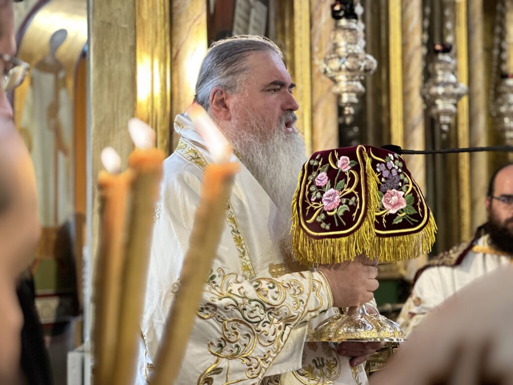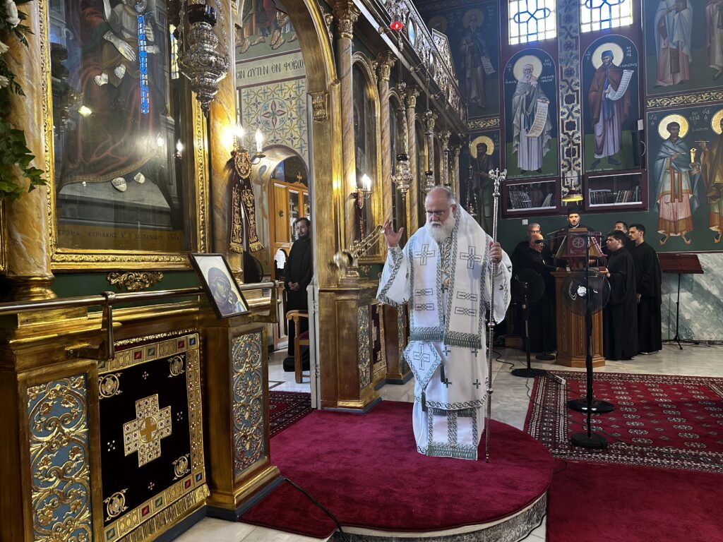 Κατά την κυριώνυμο ημέρα, στο Αρχιερατικό συλλείτουργο, προεξήρχε ο Θεοφιλέστατος Επίσκοπος Αμαθούντος κ. Νικόλαος και συλλειτούργησαν οι Θεοφιλέστατος Επίσκοπος Κνωσού κ. Μεθόδιος και Νέας Κρήνης και Καλαμαριάς κ. Ιουστίνος, συμπροσευχομένου δε του Θεοφιλεστάτου Επισκόπου Αλικαρνασσού κ. Ανδριανού.