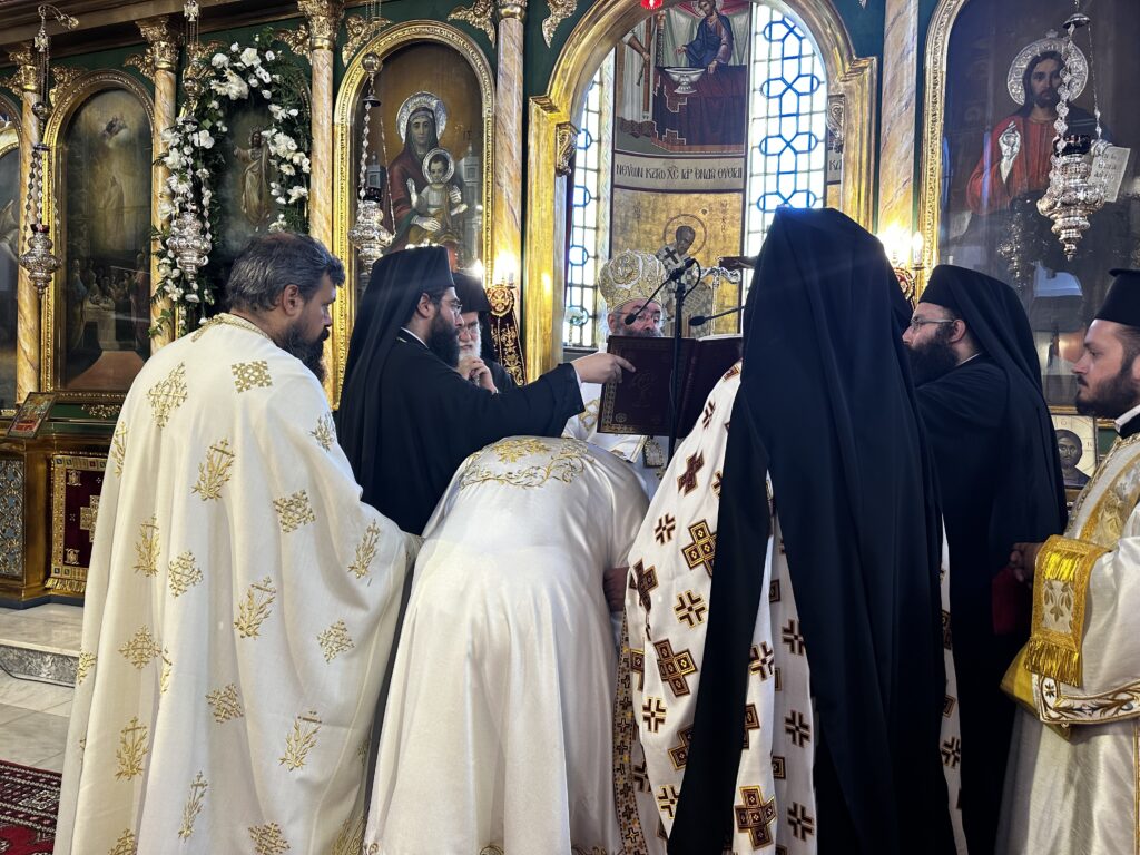 Στο τέλος του εσπερινού, ο Θεοφιλέστατος, κατόπιν παρακλήσεως του οικείου ποιμενάρχου, χειροθέτησε εις Αρχιδιάκονον, τον μέχρι τούδε διάκονο π. Κύριλλο Παλούμπα.
