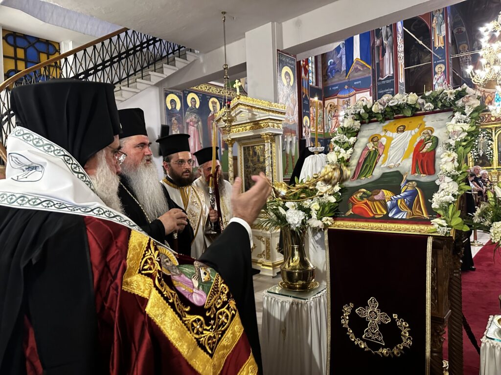 Κατά την κυριώνυμο ημέρα, στο Αρχιερατικό συλλείτουργο, προεξήρχε ο Θεοφιλέστατος Επίσκοπος Αμαθούντος κ. Νικόλαος και συλλειτούργησαν οι Θεοφιλέστατος Επίσκοπος Κνωσού κ. Μεθόδιος και Νέας Κρήνης και Καλαμαριάς κ. Ιουστίνος, συμπροσευχομένου δε του Θεοφιλεστάτου Επισκόπου Αλικαρνασσού κ. Ανδριανού.