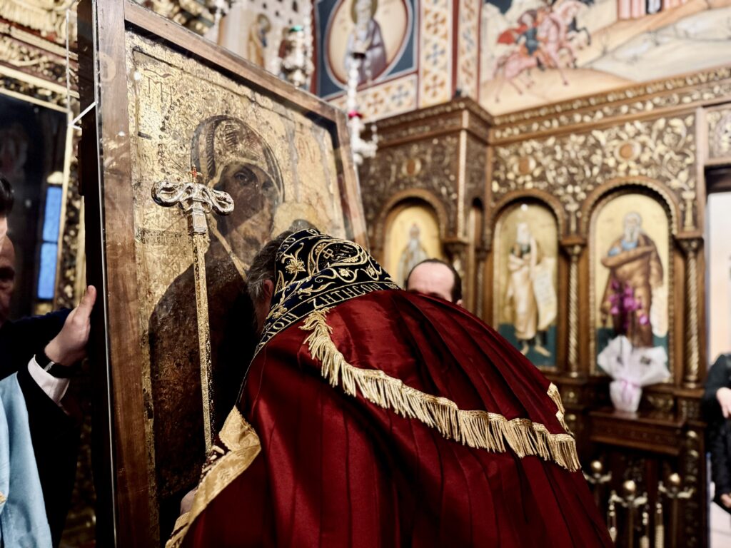 Λιτανευτικώς, τοποθετήθηκε και πάλι η ιερά Εικόνα στο θρόνο Της.