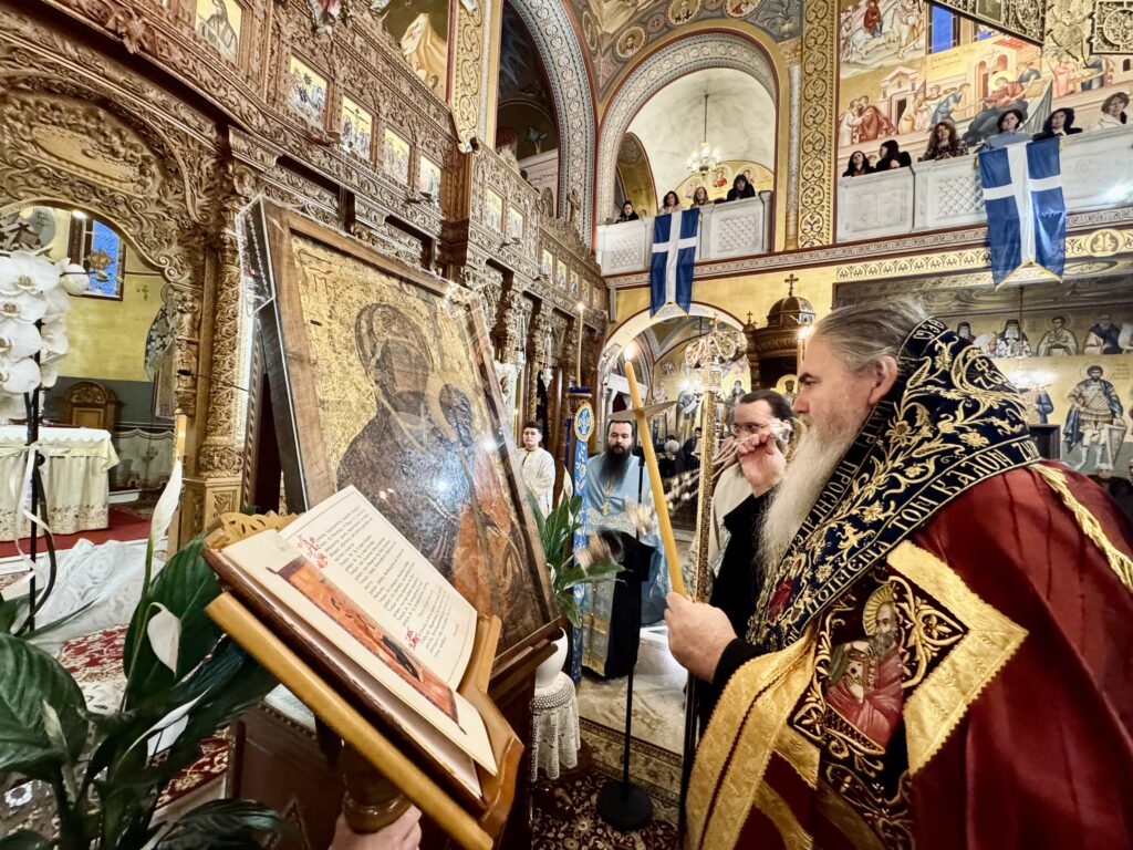 Στο κήρυγμα του, ο Σεβασμιώτατος, με αφορμή τη συμπλήρωση 1400 χρόνων από το ιστορικό γεγονός της πολιορκίας της Κωνσταντινουπόλεως από τους Αβάρους και της θαυμαστής επέμβασης της Θεοτόκου, αναφέρθηκε στον Κοντάκιο του Ακαθίστου Ύμνου, τονίζοντας ότι ο Ακάθιστος Ύμνος αποτελεί έκφραση αγάπης, ευγνωμοσύνης και πίστεως προς την Υπεραγία Θεοτόκο, η οποία στέκεται αδιάκοπα προστάτιδα και παρηγορήτρια των πιστών.