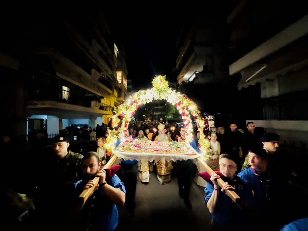 Ακολούθως, πραγματοποιήθηκε η καθιερωμένη λιτανεία του Επιταφίου στους δρόμους της προσφυγικής πόλεως, η οποία κατέληξε στην κεντρική Πλατεία Προσφυγικού Ελληνισμού Καλαμαριάς, όπου πραγματοποιήθηκε η καθιερωμένη συνάντηση των Επιταφίων τεσσάρων ενοριών της Καλαμαριάς.