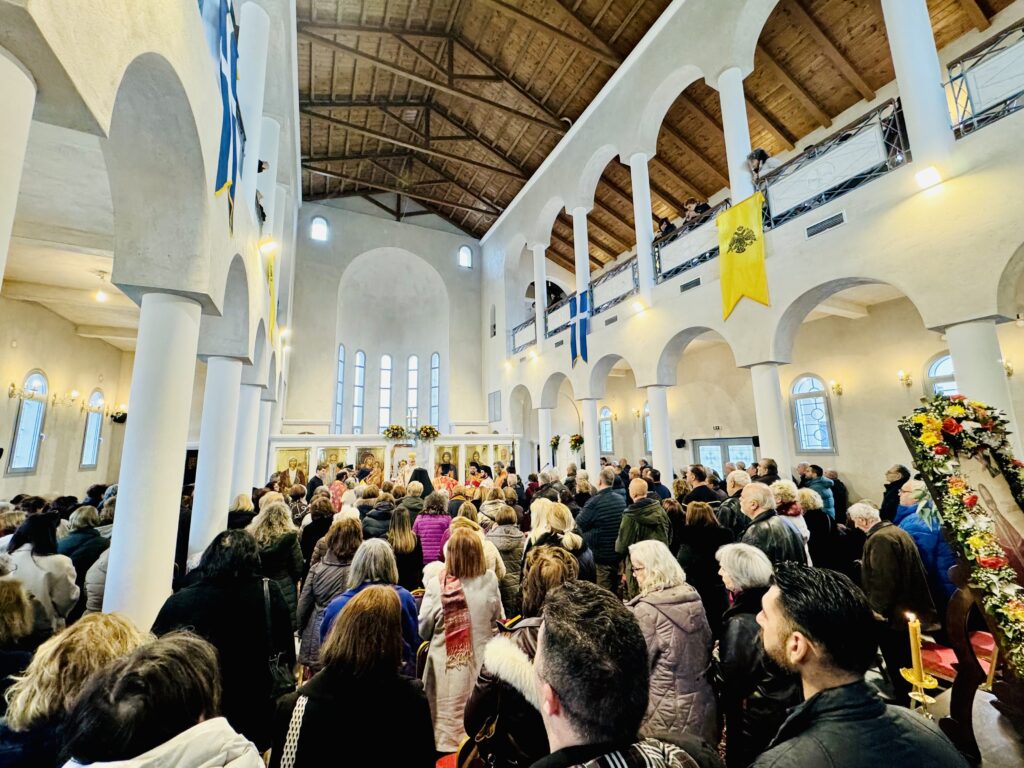 Ιδιαίτερη μνεία έκανε στο πολυπληθές εκκλησίασμα, το οποίο κατέκλυσε τον Ιερό Ναό καθ’ όλη τη διάρκεια των Ιερών Ακολουθιών, δίνοντας ζωντανή μαρτυρία πίστεως και ευλάβειας.