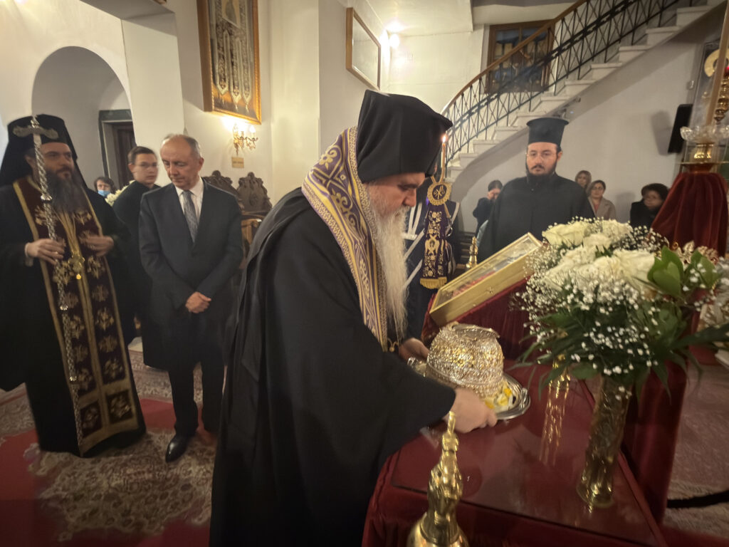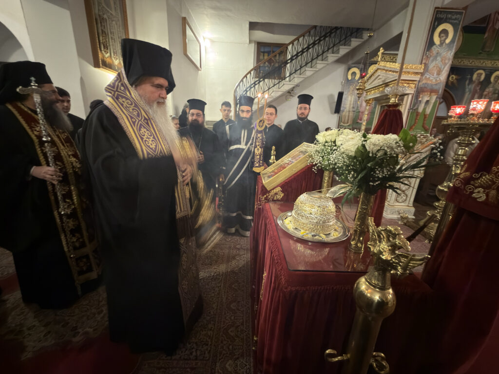 Προ του τέλους του Εσπερινού, ο Σεβασμιώτατος κ. Ιουστίνος, ευχαρίστησε θερμά τον Μητροπολίτη Ιερισσού κ. Θεόκλητο για την παροχή ευλογίας για την έλευση της αγίας Κάρας, ως και τον Πρωτοσύγκελλο του κ. Δωρόθεο για τον κόπο της μεταφοράς.