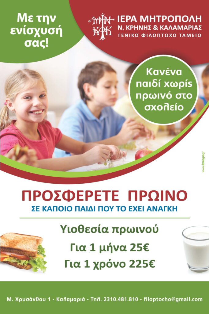 Κανένα παιδί χωρίς πρωινό και σχολικά είδη!