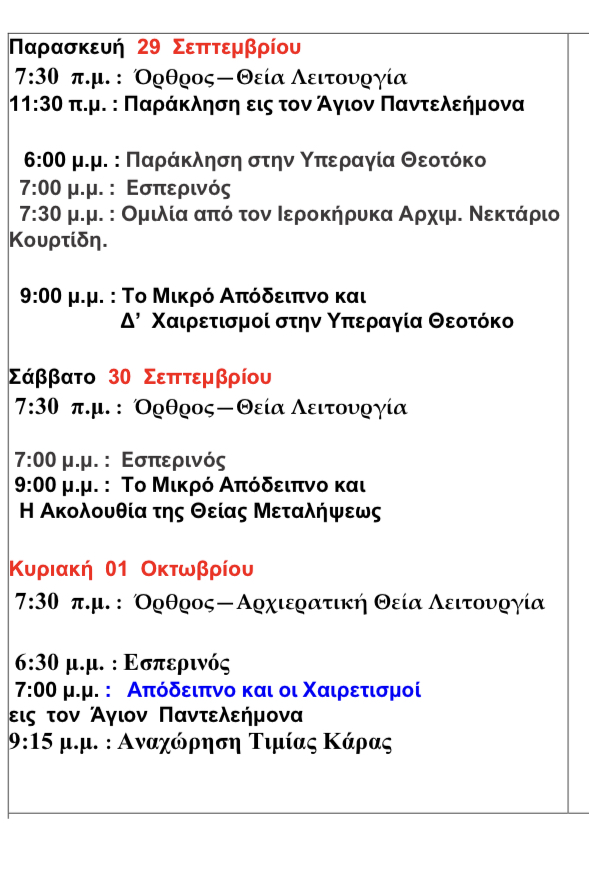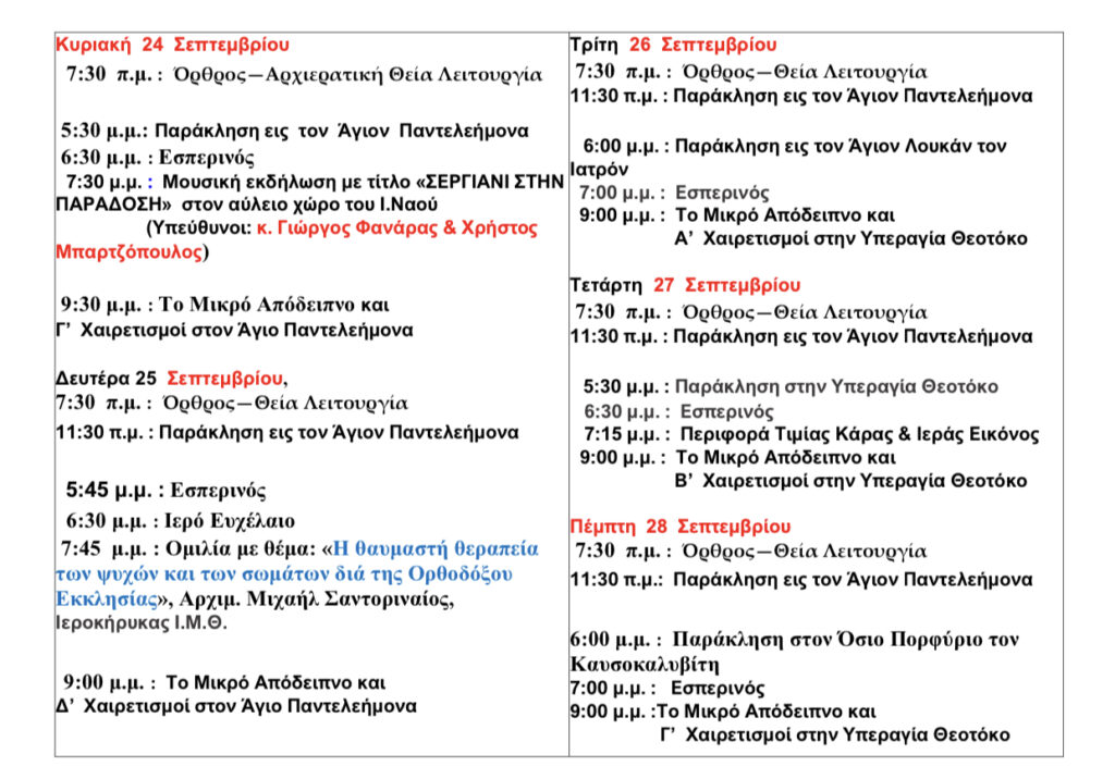 Πρόγραμμα υποδοχής Τιμίας Κάρας Αγίου Παντελεήμονος στον Ι.Ν. Αγίου Παντελεήμονος Καλαμαριάς