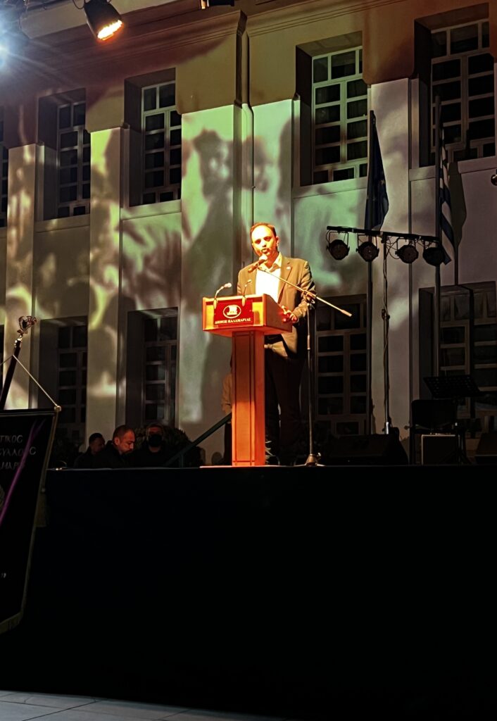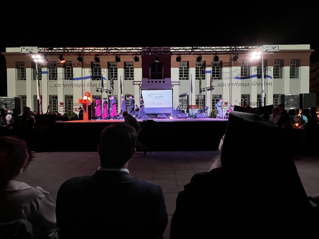 Χαιρετισμό στην εκδήλωση απηύθυναν ο Σεβασμιώτατος Μητροπολίτης κ. Ιουστίνος, ο Δήμαρχος Καλαμαριάς κ. Δαρδαμανέλης Ιωάννης και ο Αντιδήμαρχος Παιδείας κ. Γιαννακός Αθανάσιος, εκφράζοντας από κοινού τη μεγάλη συγκίνηση των παρευρισκομένων που κατέκλυσαν τον χώρο για να συμμετάσχουν βιωματικά σε μια πρωτότυπη και ποιοτική εκδήλωση τιμής, μνήμης και ελπίδας.