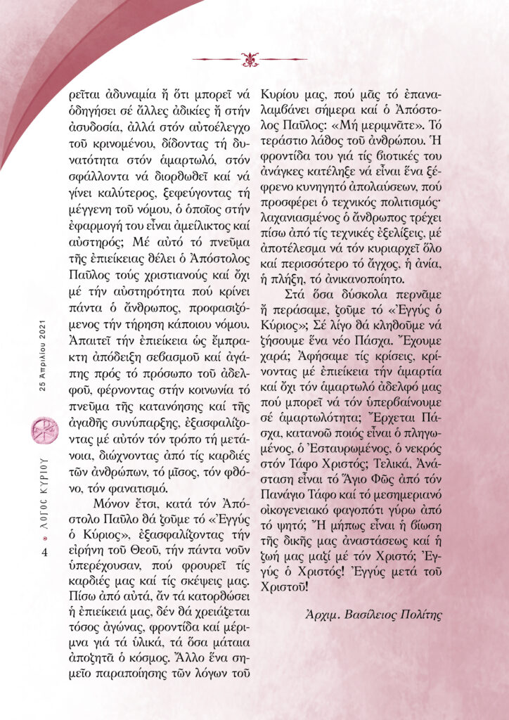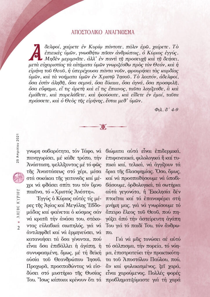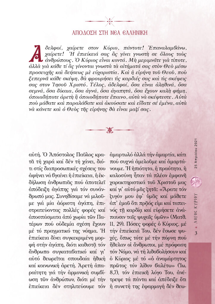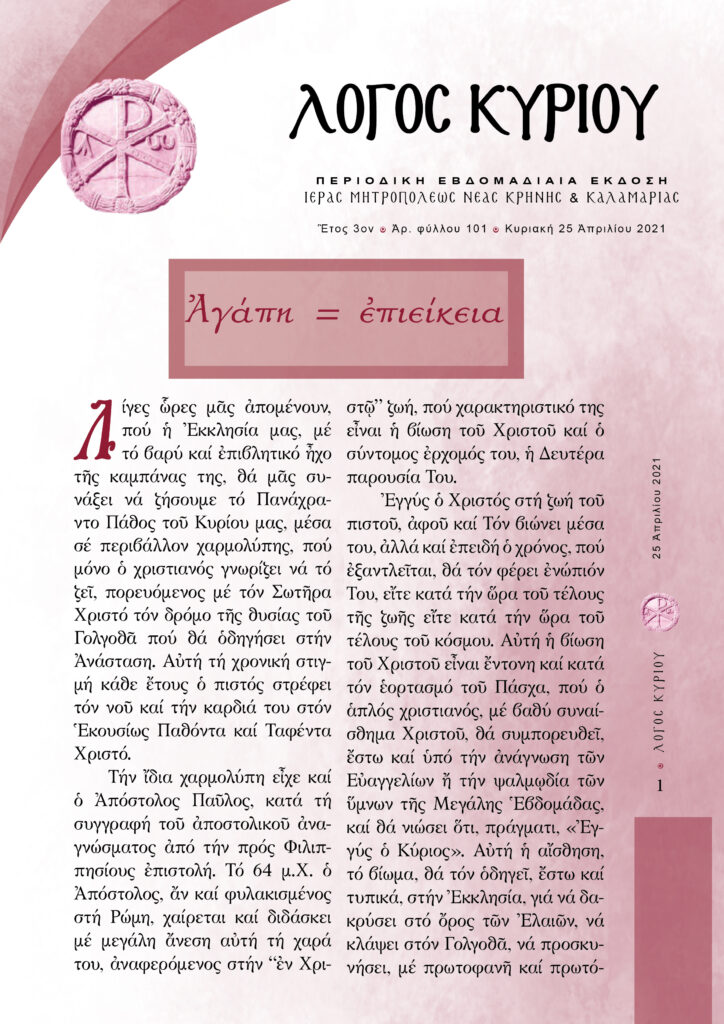 “Λόγος Κυρίου”-25/04/2021-Αγάπη=επιείκεια