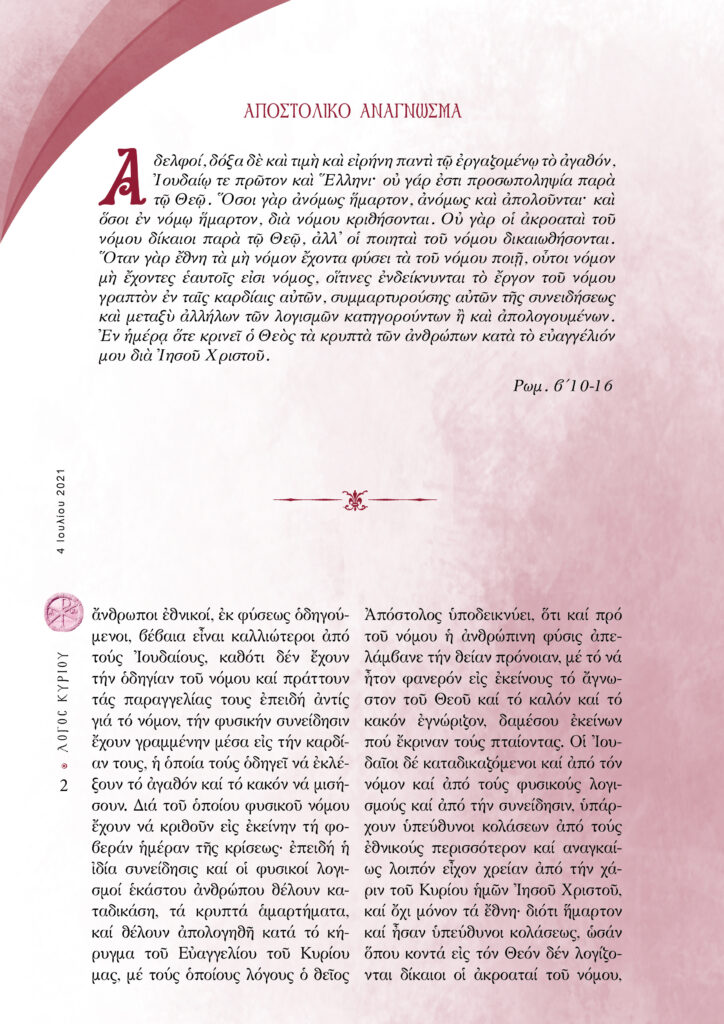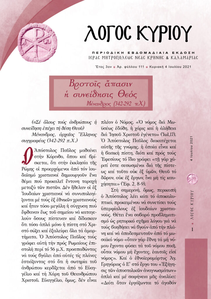 “Λόγος Κυρίου”-04/07/2021-Βροτοῖς ἄπασιν ἡ συνείδησις Θεός