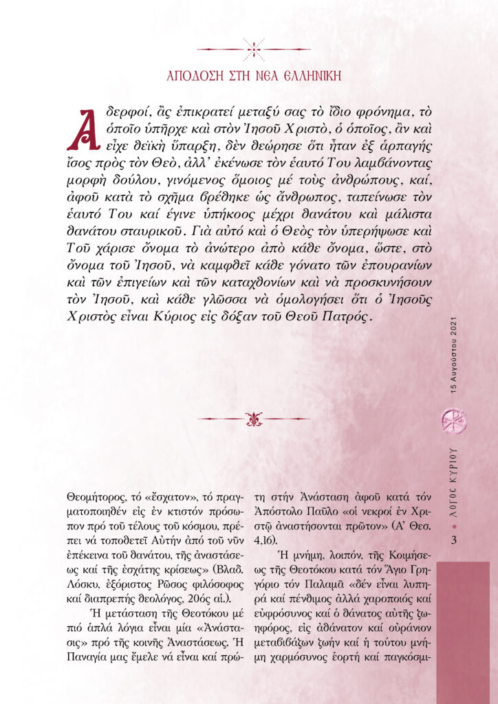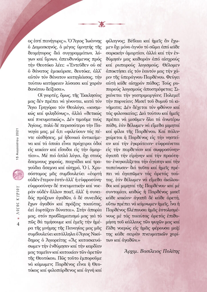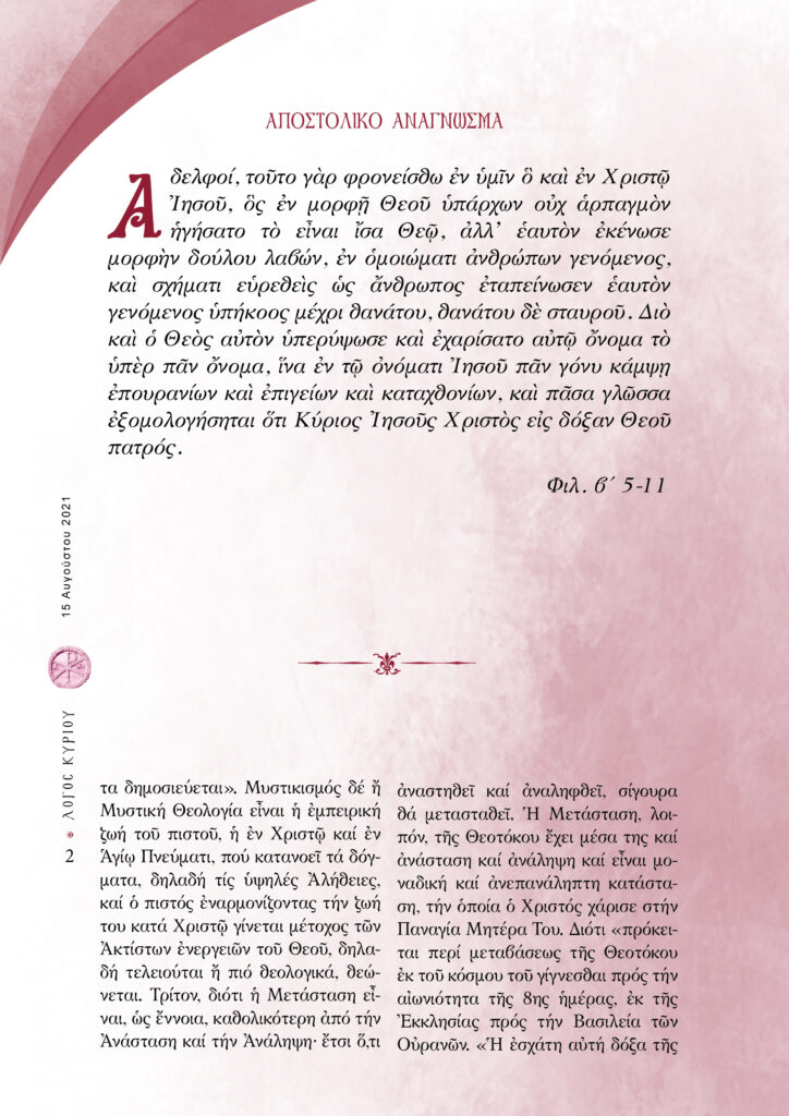 “Λόγος Κυρίου”-15/08/2021-Ἡ µετάστασις τῆς Ὑπεραγίας Θεοτόκου