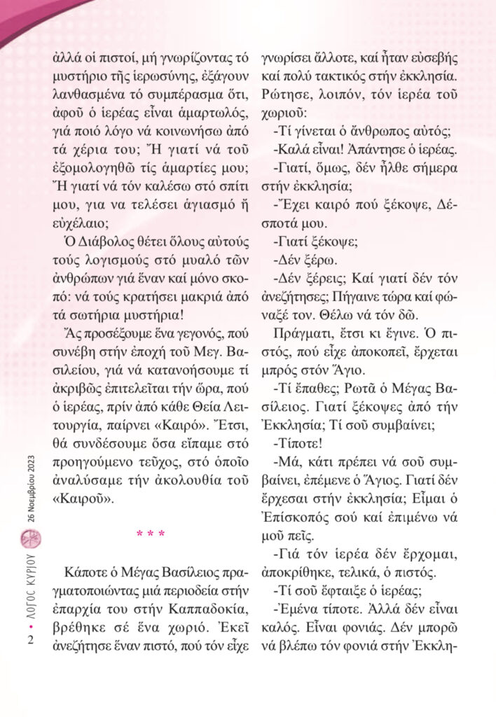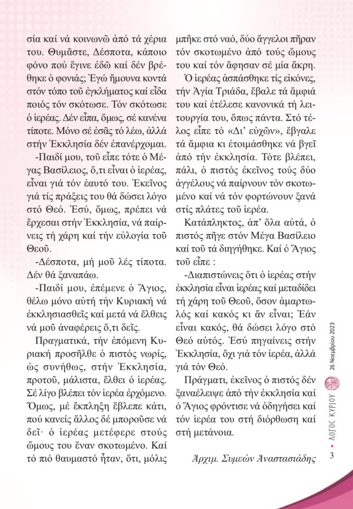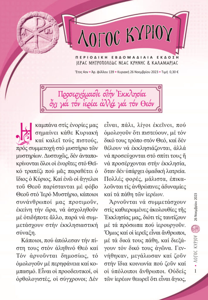 “Λόγος Κυρίου”-26/11/2023-Πρσερχόμαστε στην Εκκλησία όχι για τον ιερέα αλλά για τον Θεό