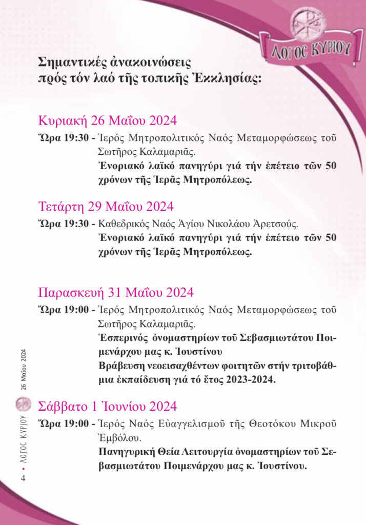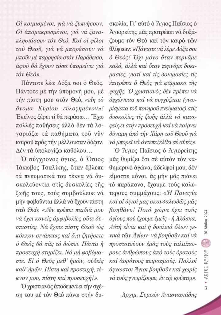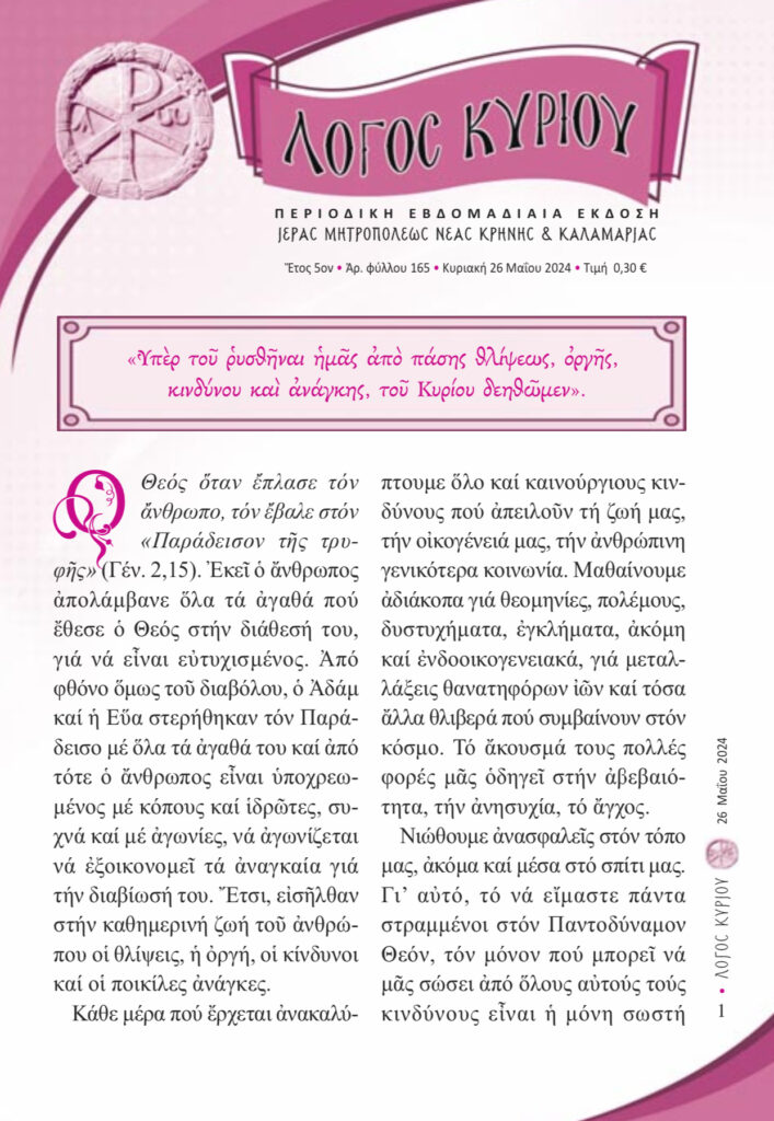 “Λόγος Κυρίου”-26/05/2024-«Ὑπὲρ τοῦ ρυσθῆναι ἡμᾶς ἀπὸ πάσης θλίψεως, ὀργῆς, κινδύνου καὶ ἀνάγκης, τοῦ Κυρίου δεηθώμεν»