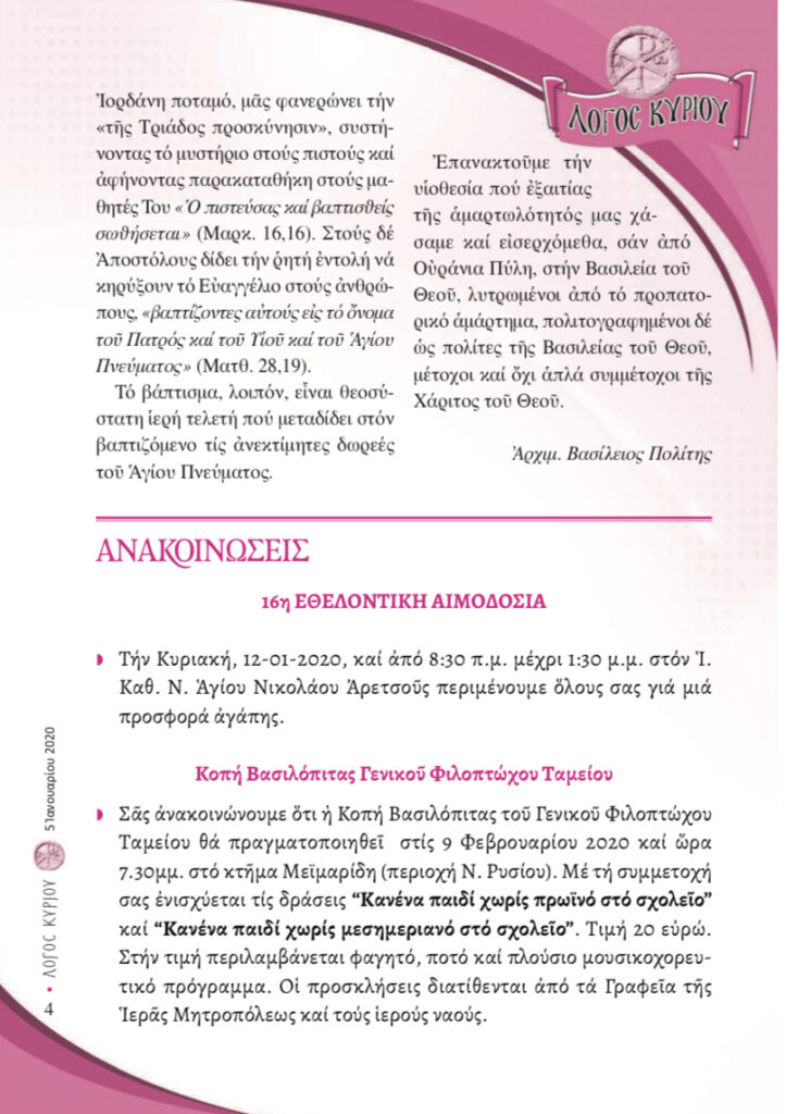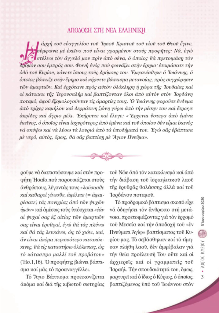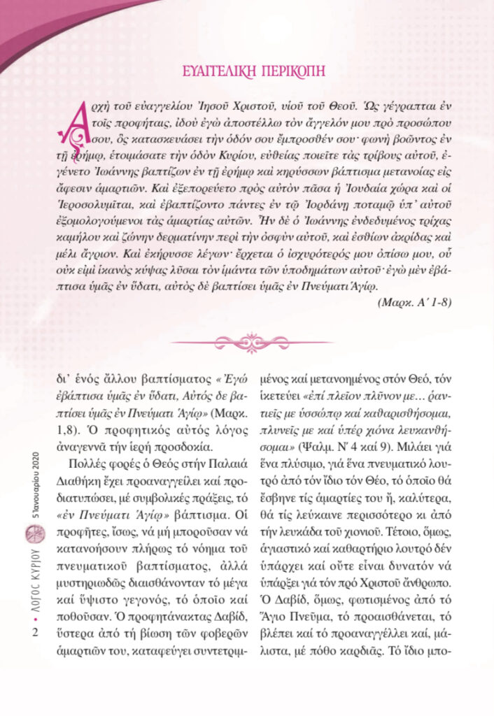 “Λόγος Κυρίου”-05/01/2020-Βάπτιση και… Βάπτισμα